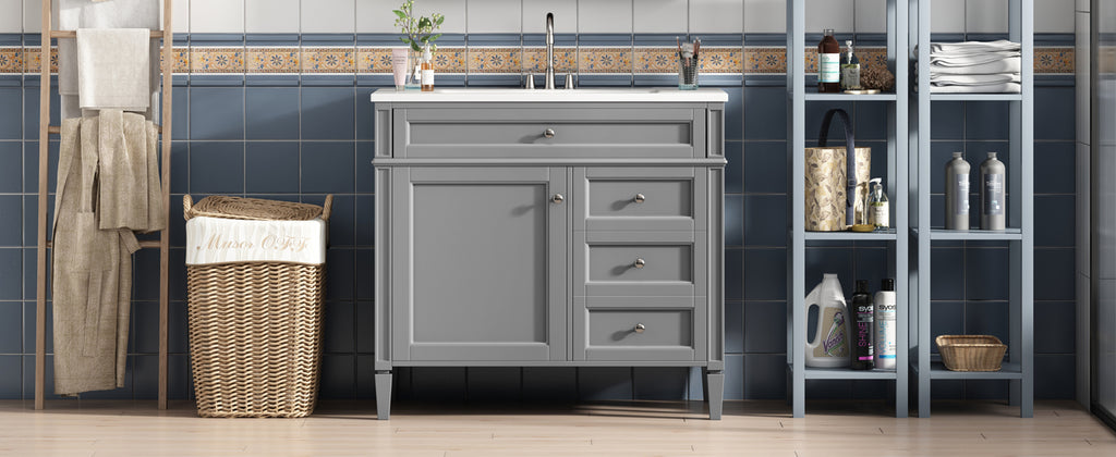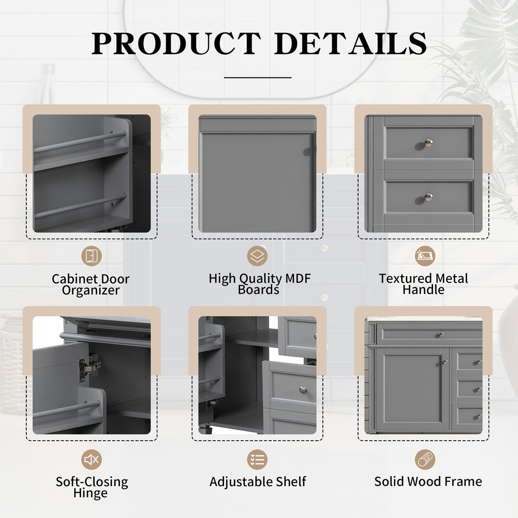 - [ Multi-Purpose Cabinet & Concealed Storage ] Are you looking for stylish and functional storage solutions for your bathroom? Our bathroom vanity provide ample space for all your toiletries and bathroom essentials. The combination of the cabinet body and the drawer perfectly stores all kinds of bathroom products and keeps the necessities away from water stains and dust. Soft-close doors and drawer fronts feature a water-resistant paint finish for durability.