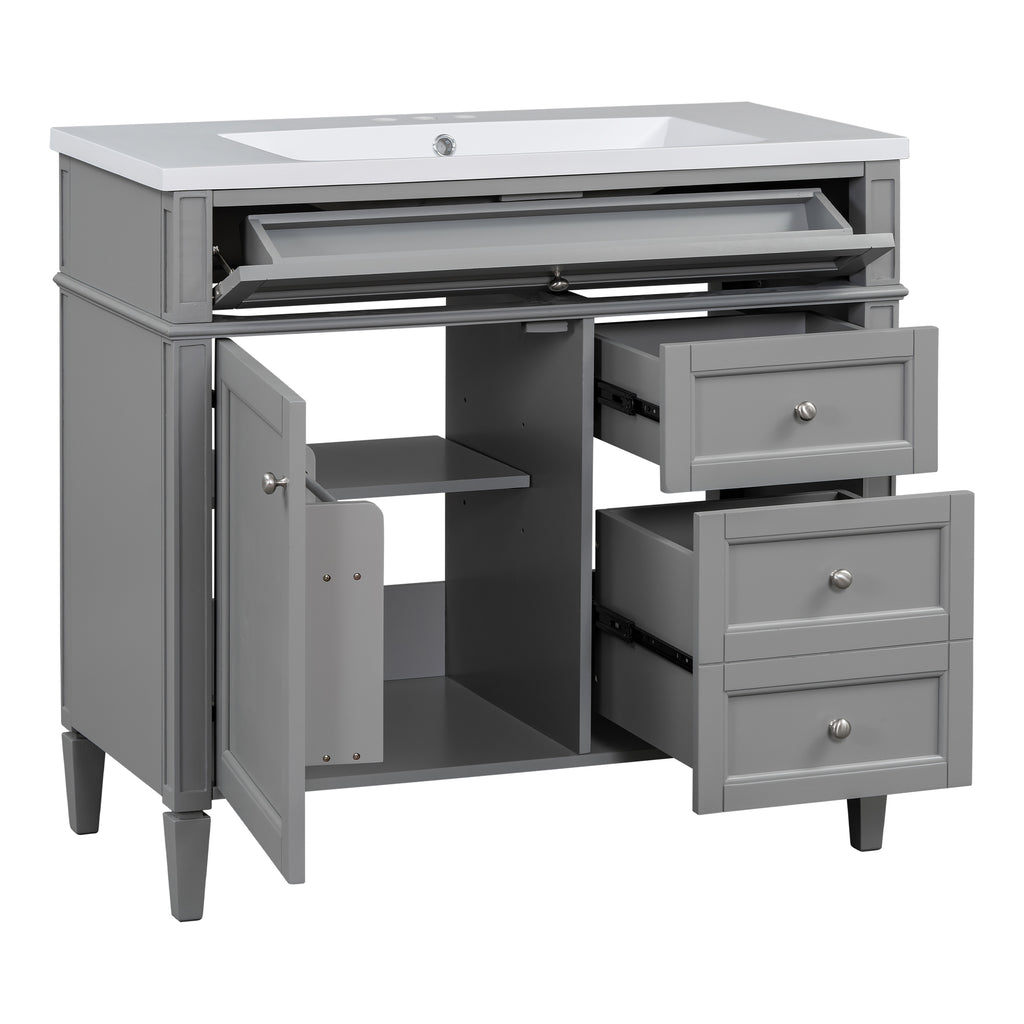 - [Amber Storage] In order to meet your storage needs for various items, this bathroom vanity is equipped with very sufficient storage space. The entire bathroom cabinet has two drawers for daily necessities, a tip-out drawer for small items, and a cabinet for medium and large items with shelves that distribute space reasonably. In order to further rationalize and expand the space you can use, we also designed the cabinet door organizer on the cabinet door, so that there is a lot of usable space.