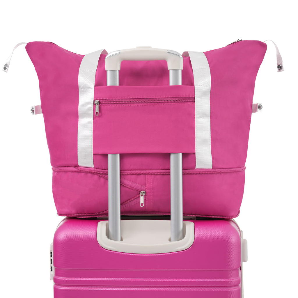 - Luggage set includes a 28-inch suitcase, a travel duffel bag, and a toiletry bag. The duffel bag has trolley sleeve with zippered pocket to pack your travel essentials, you can conveniently attach them to the adjustable suitcase handle to meet your needs.