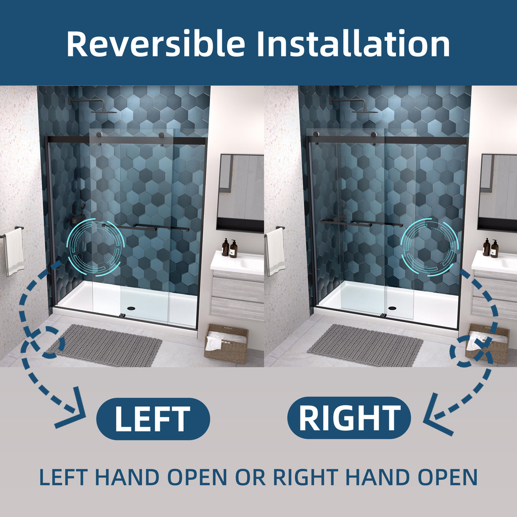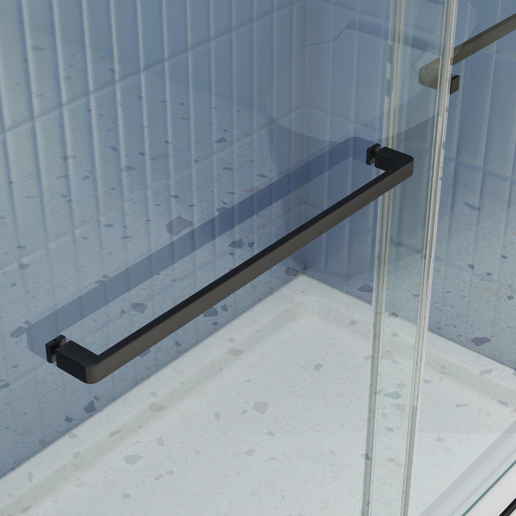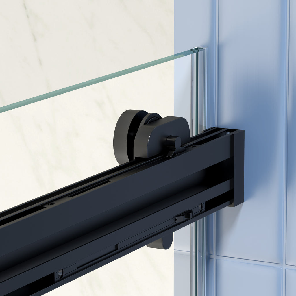 - Frameless with good anti-collision, easy install. Double sliding door
