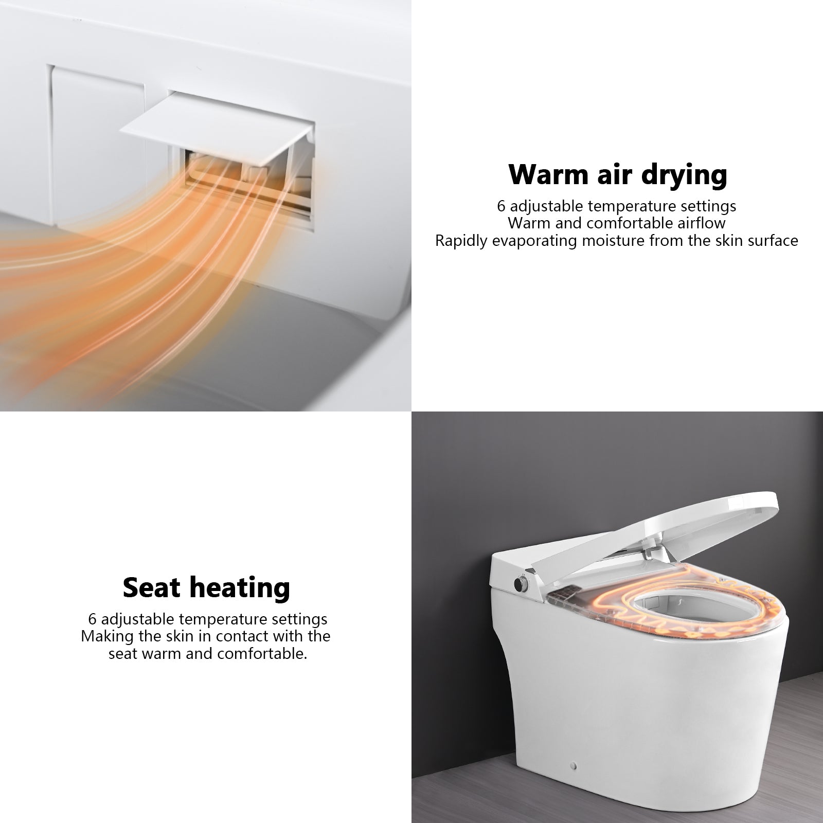 - Seat heating and warm air drying function have 6 adjustable temperature settings, which can be adjusted according to your needs to provide a comfortable experience.