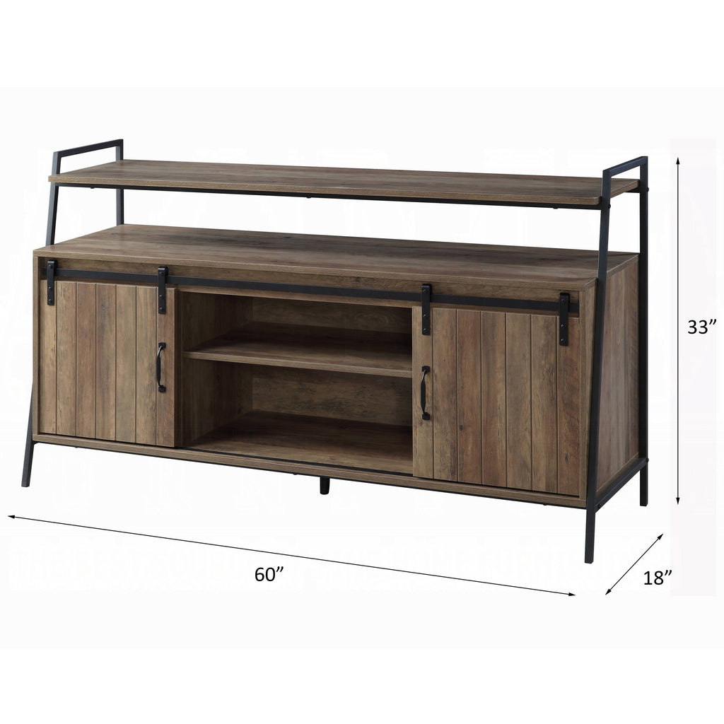 - Featuring a sliding barn door, the TV stand offers stylish and functional storage for media components, DVDs, or other items, adding a rustic touch to your living space