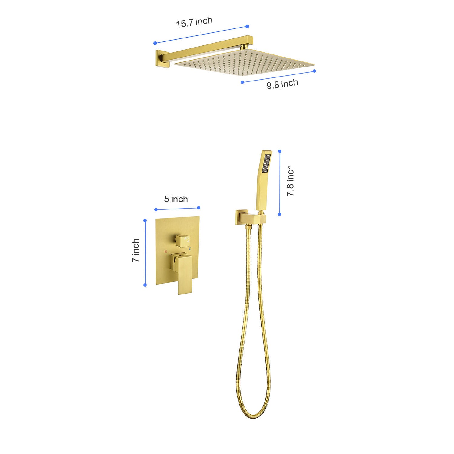 Wall-mounted rain shower systems have clean lines and a sleek look that perfectly match any bathroom style. This shower system is made of brass and high-quality stainless steel for durability. The shower head uses a self-cleaning silicone nozzle, so the water outlet will not be blocked and is easy to clean. When showering, the shower head provides a continuous and powerful shower massage for your whole body, allowing you to relax and enjoy a wonderful shower experience.