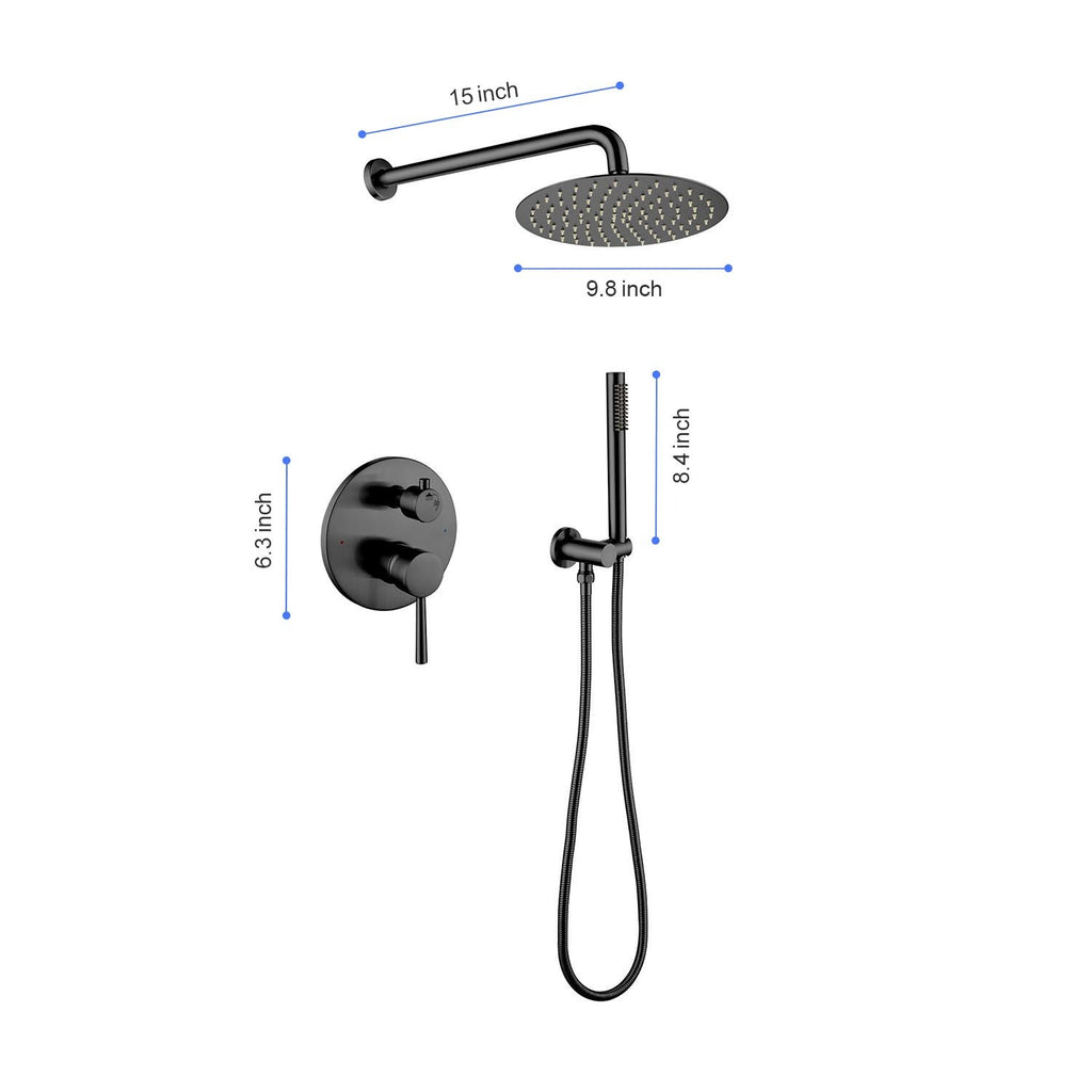- Installation method: wall-mounted. Includes: shower head, hand shower head, 59-inch shower hose, shower bracket, water control valve, mounting hardware included.