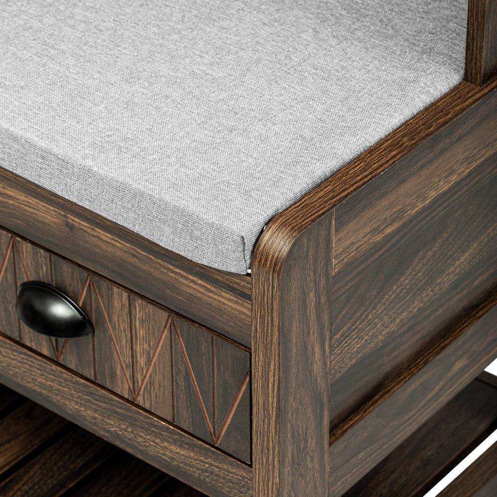Designed with 1.5’’ thickness cushion, providing a soft seat for putting on or taking off shoes. And 2 drawers for storing gloves, keys, or any other small items; 1 bottom shelf providesan ideal space for placing shoes and baskets.