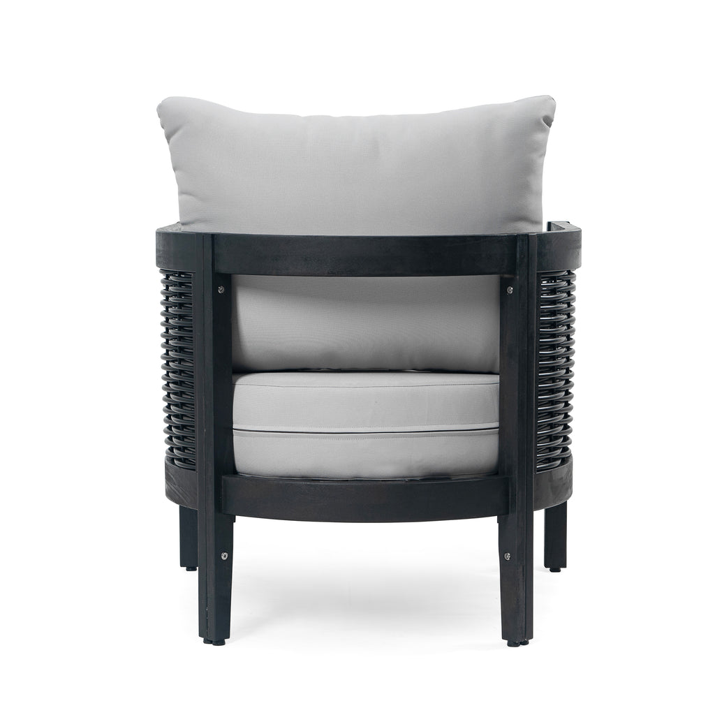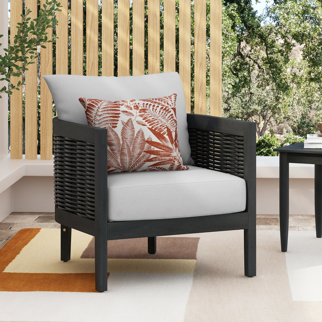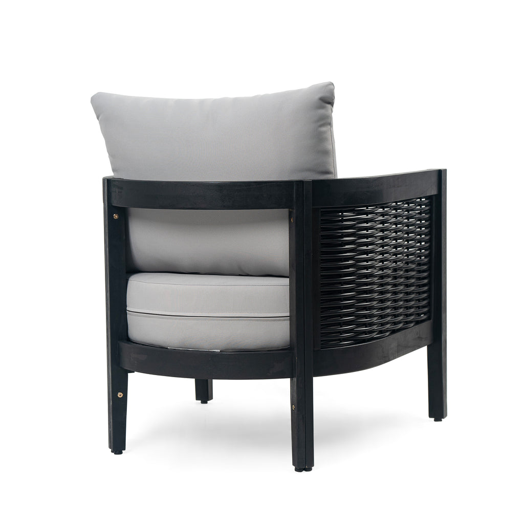 Enjoy the warm sunshine in luxurious seating that is sure to bring an extra boost of style to your space. Combining a gorgeous blend of mixed materials, our club chair set will be a flawless addition to any outdoor lounge area. This can be used as a standalone or can be used to accent your existing furniture, making this a dream for those who love to personalize their space. With solid acacia wood frames, wicker accents, and plush outdoor cushions, these chairs offer hours of conversation for you and your guests.