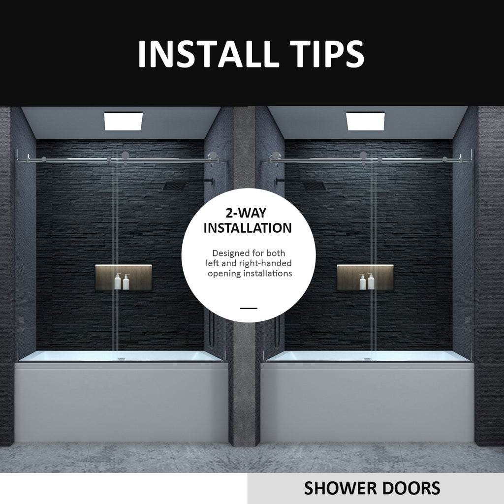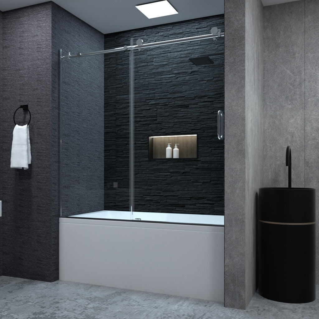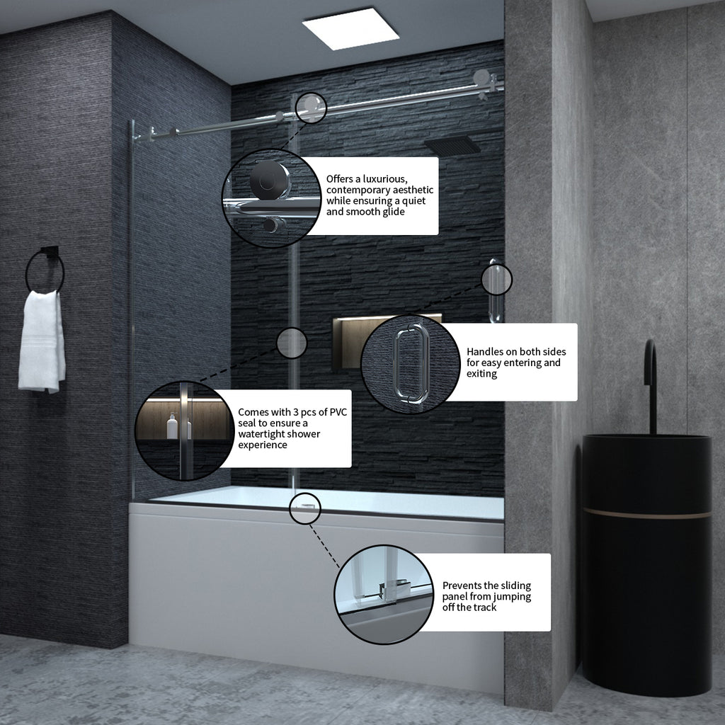 - 58 in. W to 60 in. W x 60 in. H semi-frameless sliding alcove tub door
