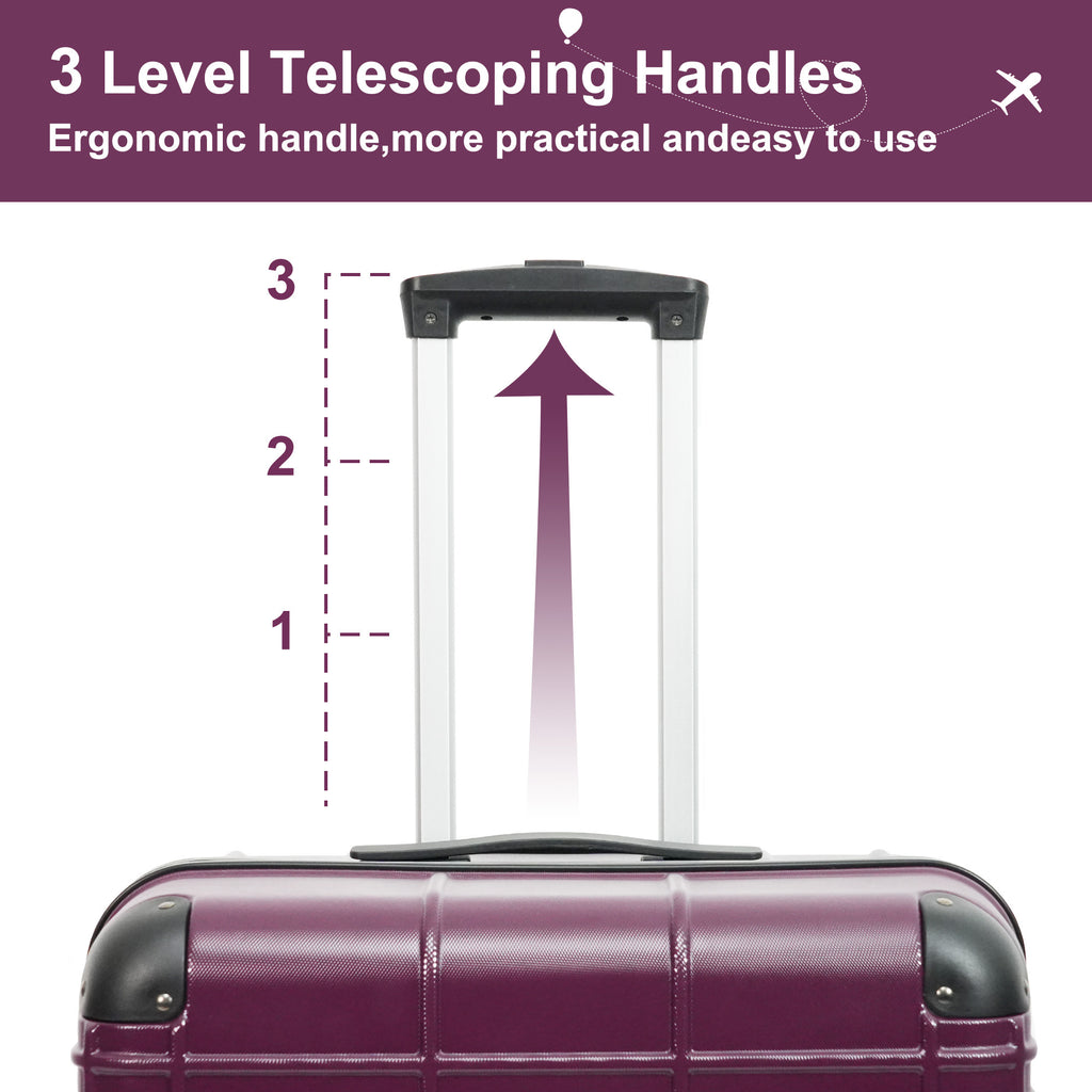 - [Stylish Design and Thoughtful Details]: Our ABS+PC Material Luggage Set is not only functional but also visually appealing. With a sleek and modern design, it effortlessly combines style and practicality. Additionally, the set includes convenient features like telescopic handles, reinforced corner guards, and interior organization compartments, making packing and traveling a breeze.
