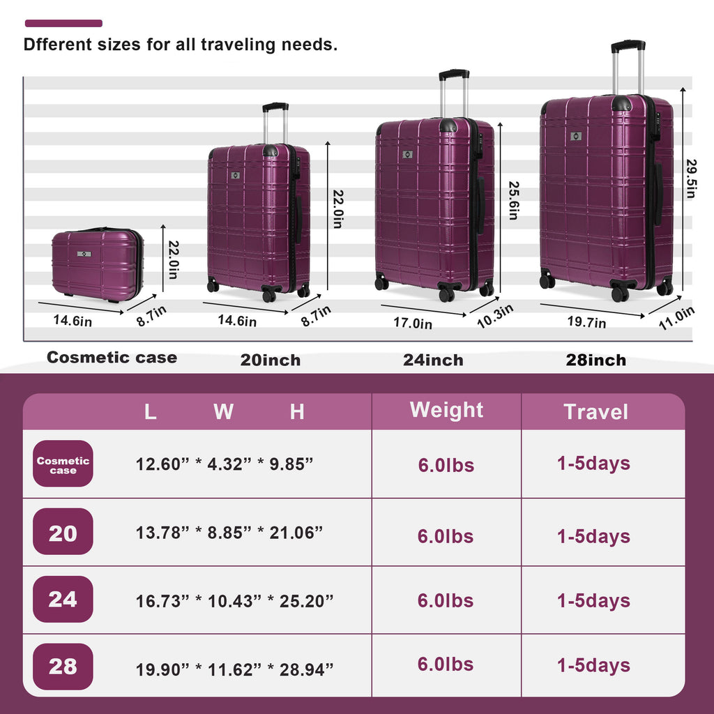 - [Multi functional four piece set]: Our set includes four sizes -12 inches, 20 inches, 24 inches, and 28 inches - to meet all your travel needs. Whether you're on a short-term business trip or a long vacation, you can choose the perfect size for every occasion, ensuring you have enough space to store all your essentials.