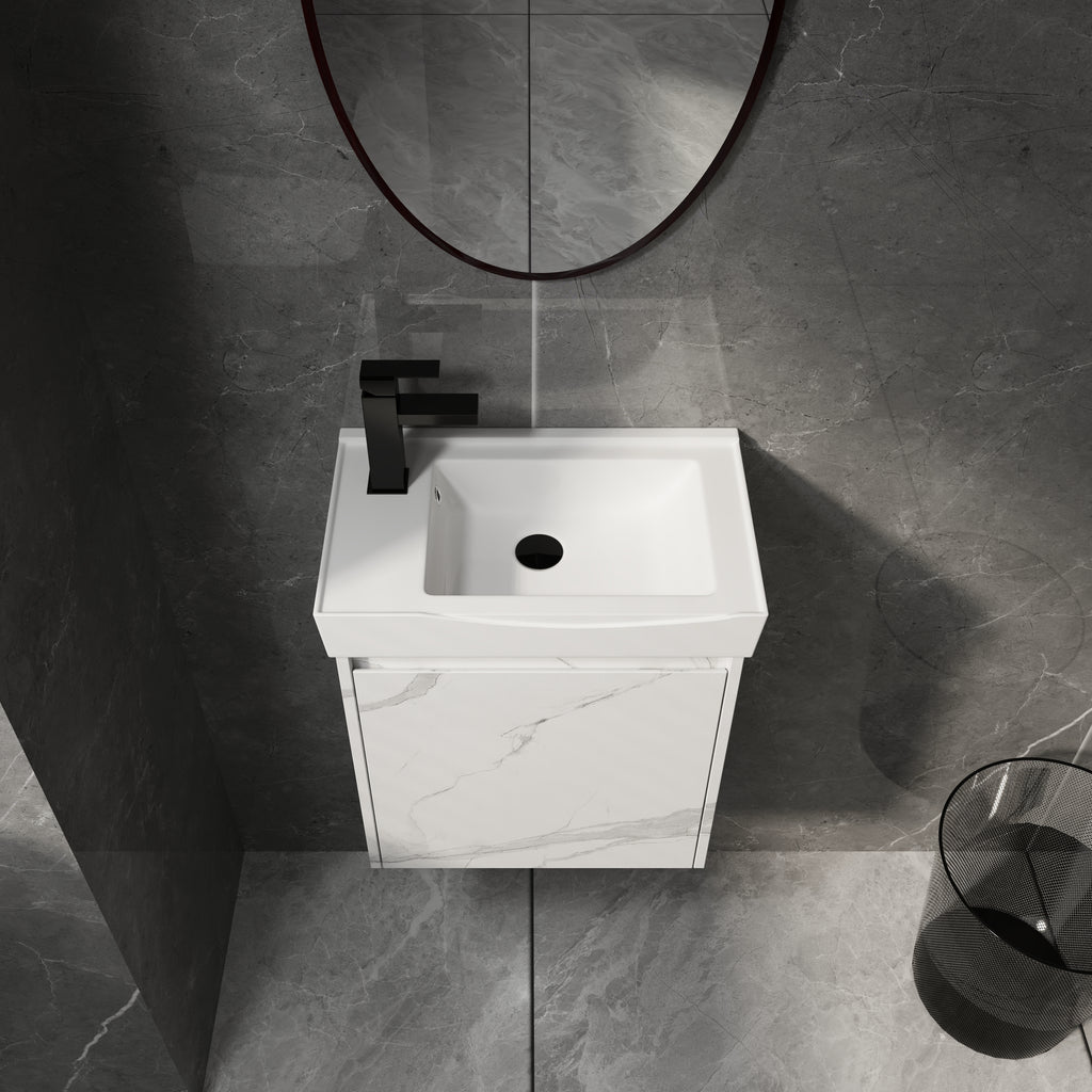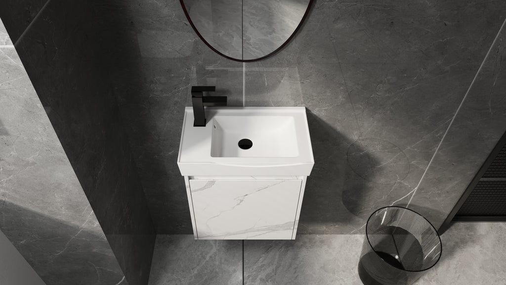 - [Ample Storage Space]: This bathroom vanity is a single door cabinet that keeps your bathroom products away from moisture and dust.