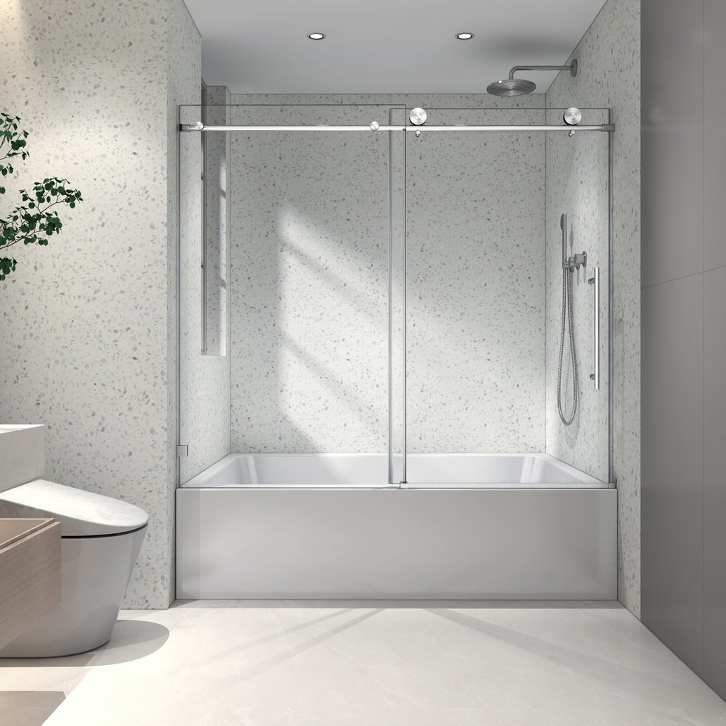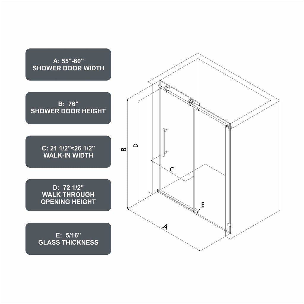- With soft-closing function, soft-closing function which is adjustable and works even after cutting 5 inches.And it can pass 50,000 times of door opening and closing test. Maximum permissible wall inclination 3/8''.60'' product is suitable for 55''(door space is 21.8'') to 60.8'' space,54'' product is suitable for 49''(door space is 16.8'') to 54.8'' space,48'' product is suitable for 44''(door space is 18.8'') to 48.8'' space .A drawing of the opening door dimensions is attache.