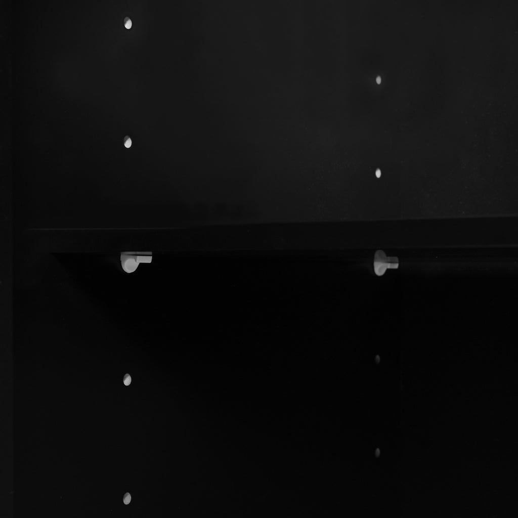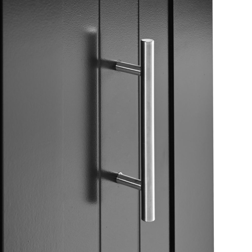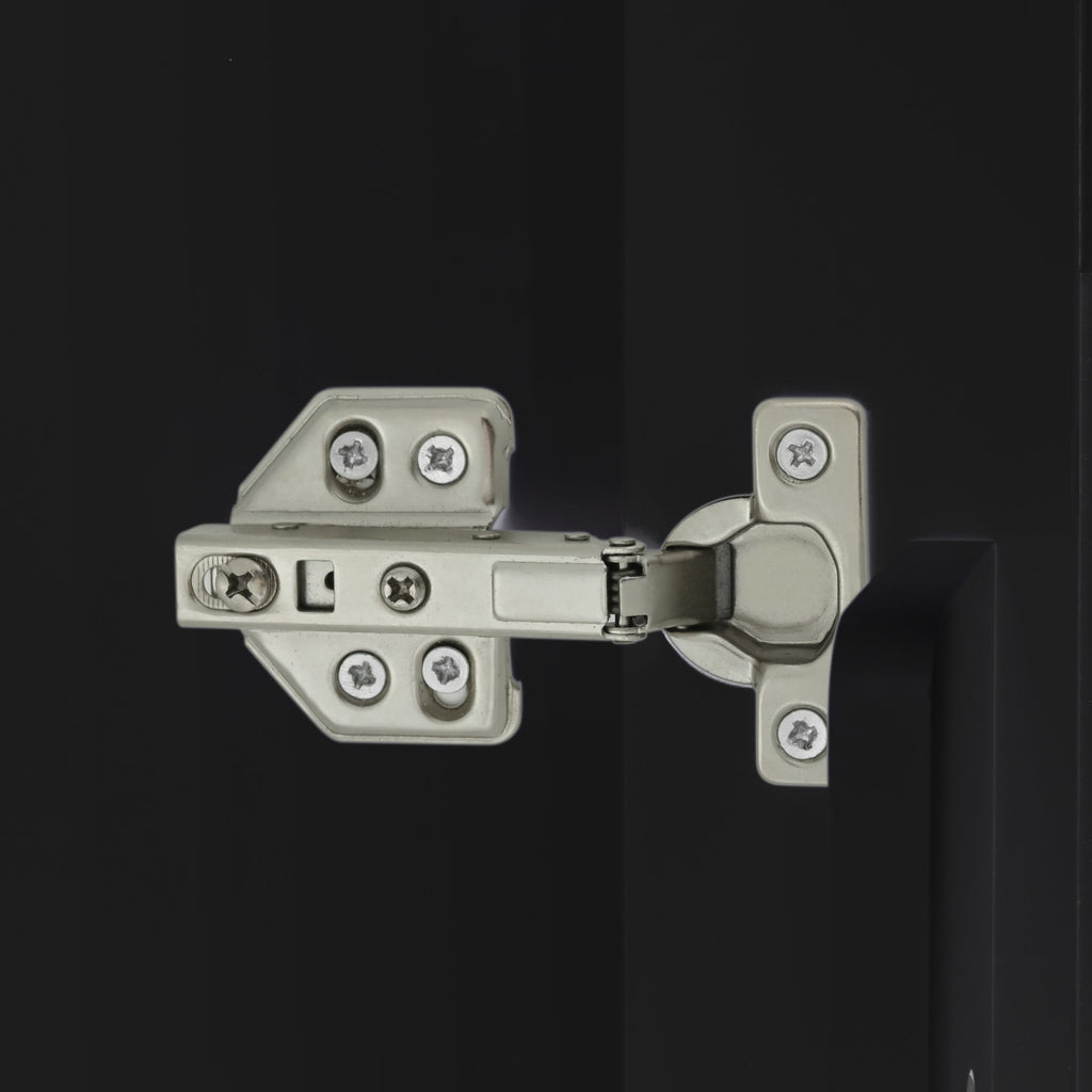 Height-adjustable shelves inside the cabinet doors provide flexibility in accommodating various kitchen items of different sizes.