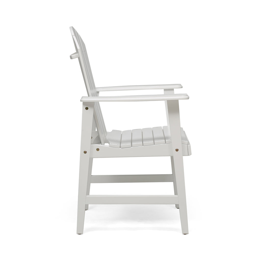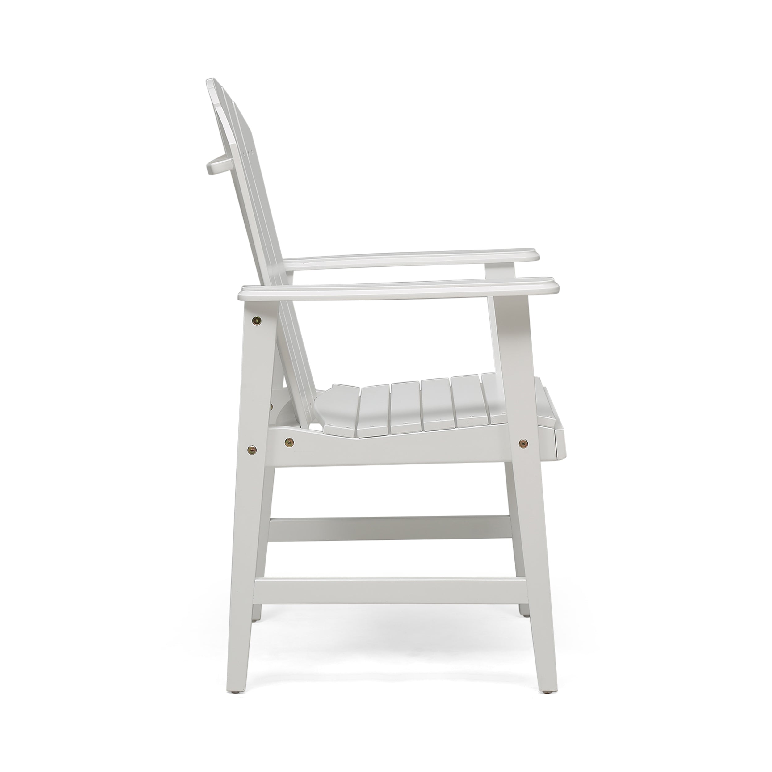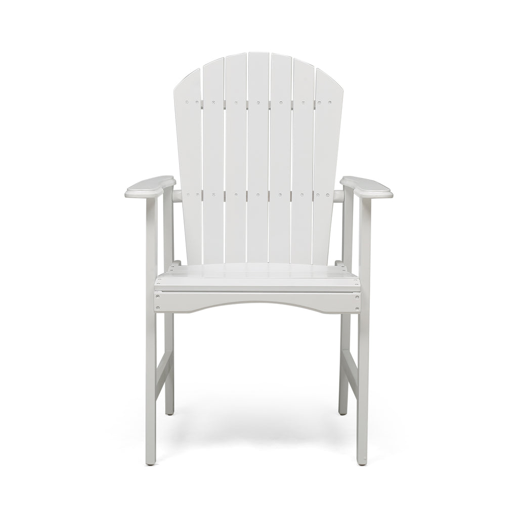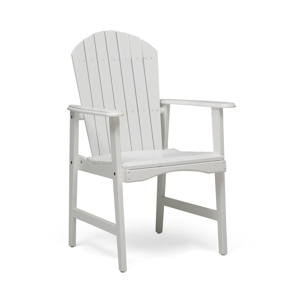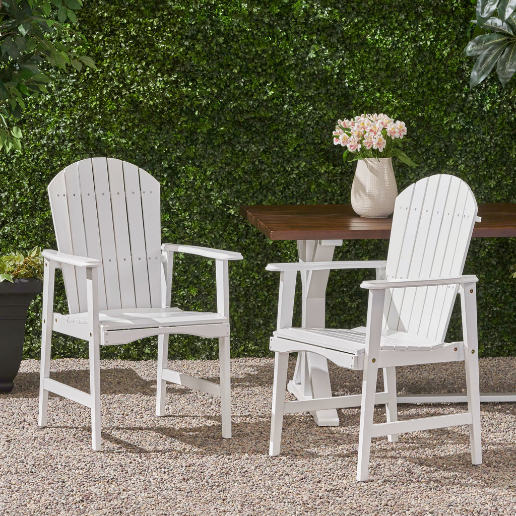 - Give your backyard or patio space a wonderful natural feel with our Adirondack dining chairs. Made from acacia wood, this chair set offers a naturally weather-resistant structure that also provides an attractive rustic look for your outdoor space. Showcasing slatted seating that is characteristic of Adirondack design, our chair set is the perfect addition to any dining set or lounge space. With easy maintenance and polished style, our chairs offer an instant upgrade that will last you for years