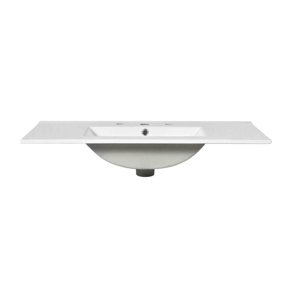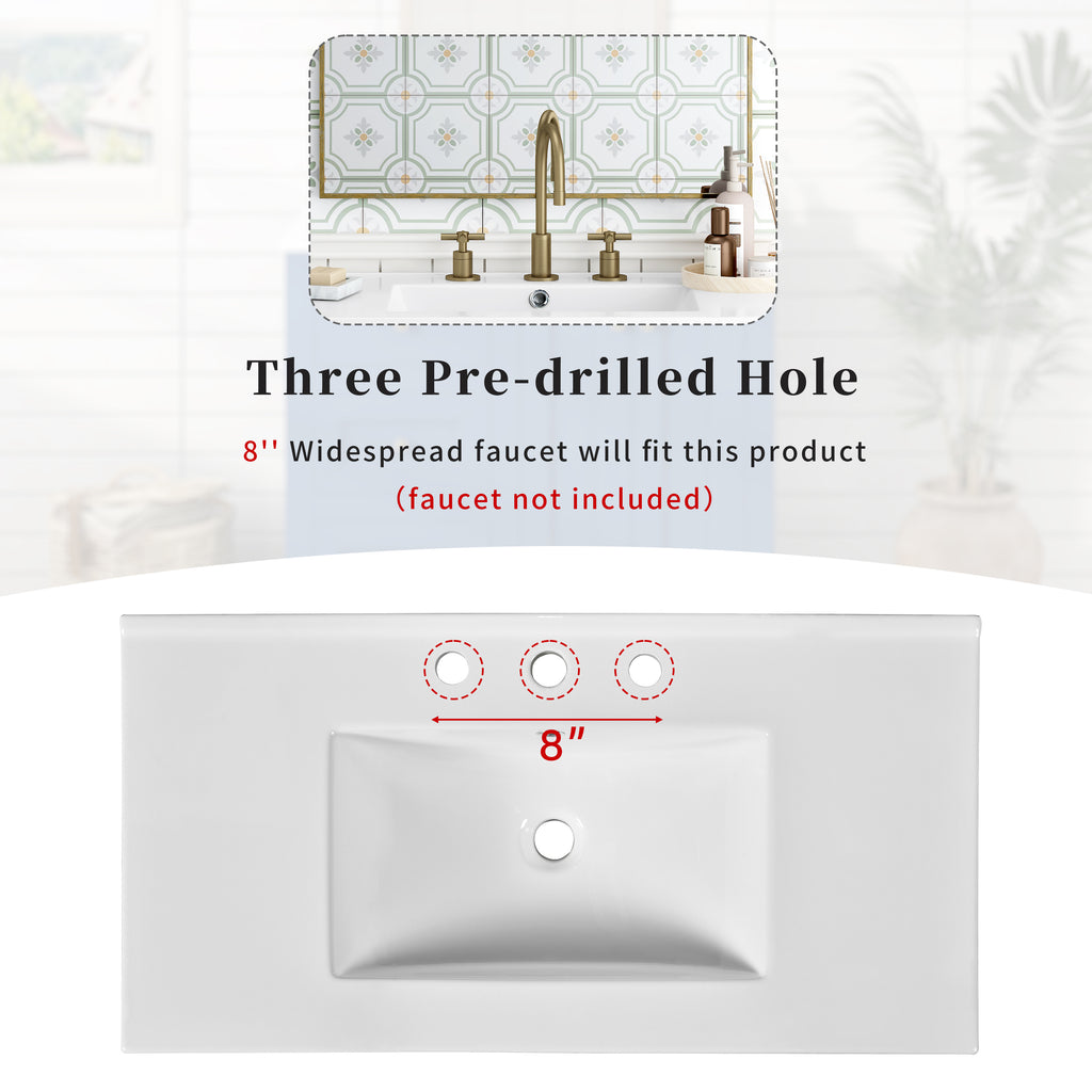 - [Ceramic Sink] The elegant white ceramic sink features a rectangular basin with an integrated overflow and a three-hole faucet holder. Its half-moon design extends almost to the edge, providing ample space for daily use. Ceramic is very easy to clean and can easily ensure a smooth and shiny appearance. Please note that 8-inch center faucets are compatible with this sink (faucet not included).