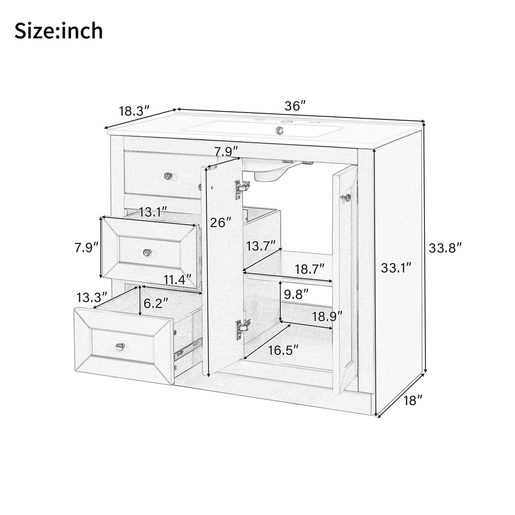 36inch Bathroom Vanity with Ceramic Sink, Bathroom Storage Cabinet with 2 Drawers
