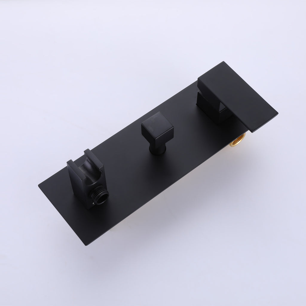 4. This matte black shower faucet, square hand shower, unique design, high standard matte black finished on the surface, scratch-resistant, corrosion-resistant, and easy to clean.