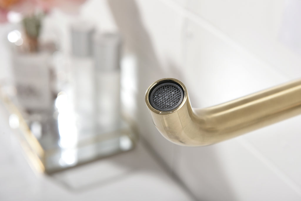 - Anti-splash aerator provides smooth, straight flow of water, reducing noise and waste.