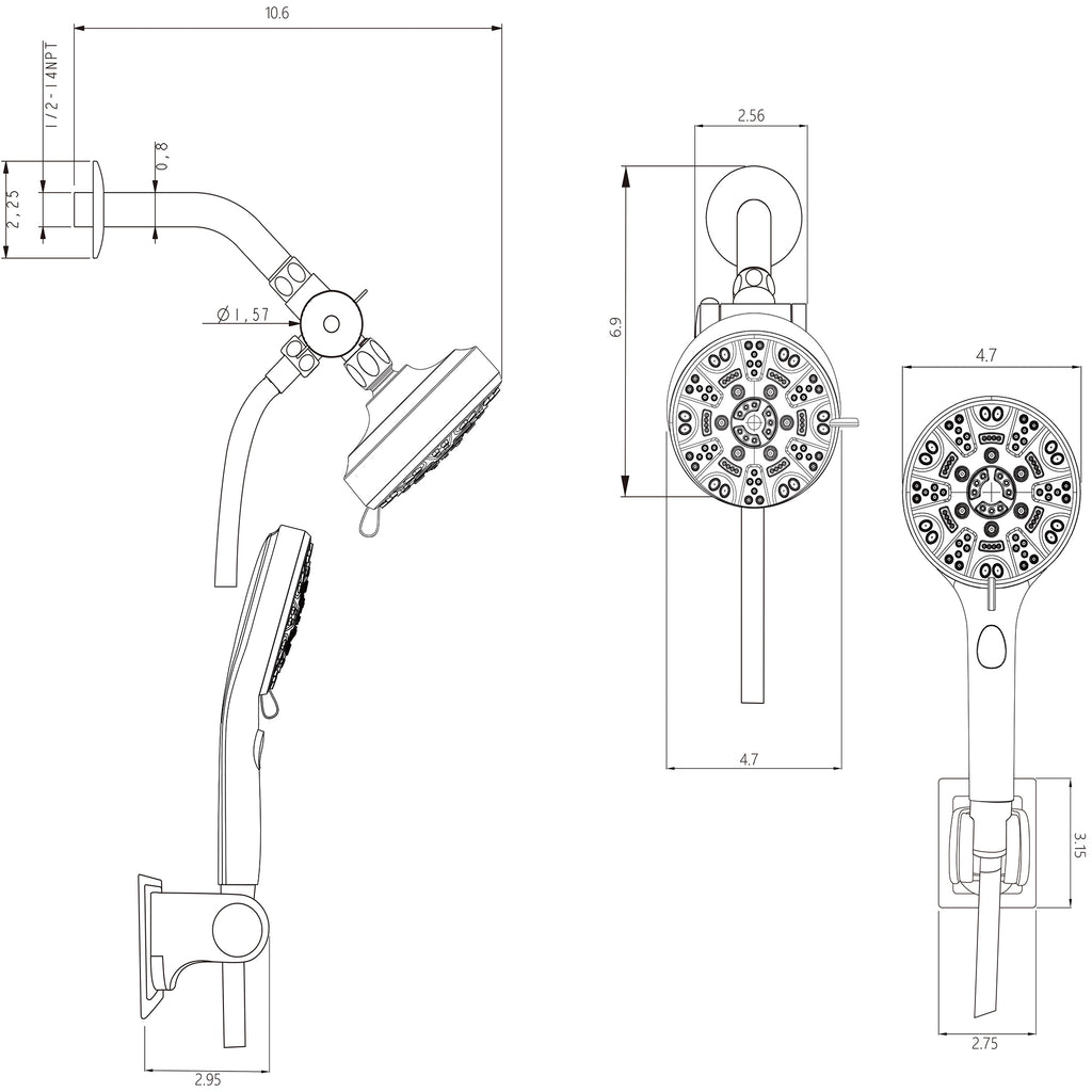 - What's included: 4.7-inch shower head and adjustable hand-held shower, adjustable Angle shower holder, 59-inch stainless steel shower hose, stainless steel shower arm with enamel cover, gasket, plumber's tape, installation/operator's manual, etc.