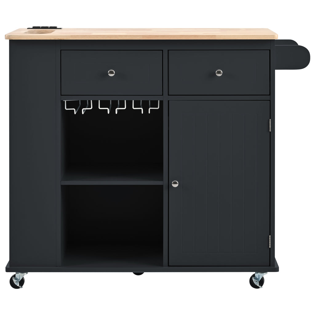 Kitchen Cart with Power Outlet,Drop Leaf,with Open Storage and Wine Rack