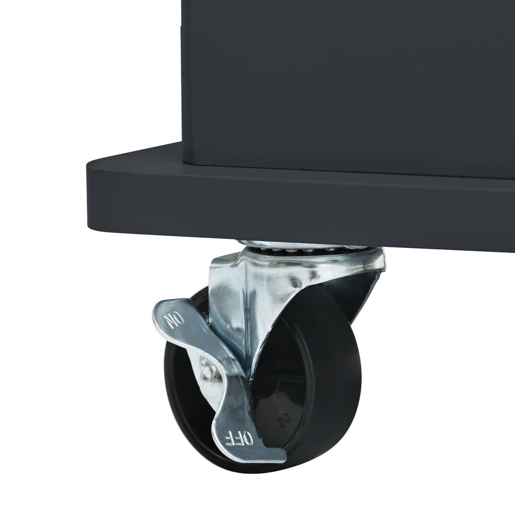 The kitchen island comes with five smooth rolling wheels for easy and free movement.2 wheels are lockable. The brake design allows the wheels to be locked in a stable position at will. You can place the 2 lockable wheels diagonally and the fixing will be more secure.