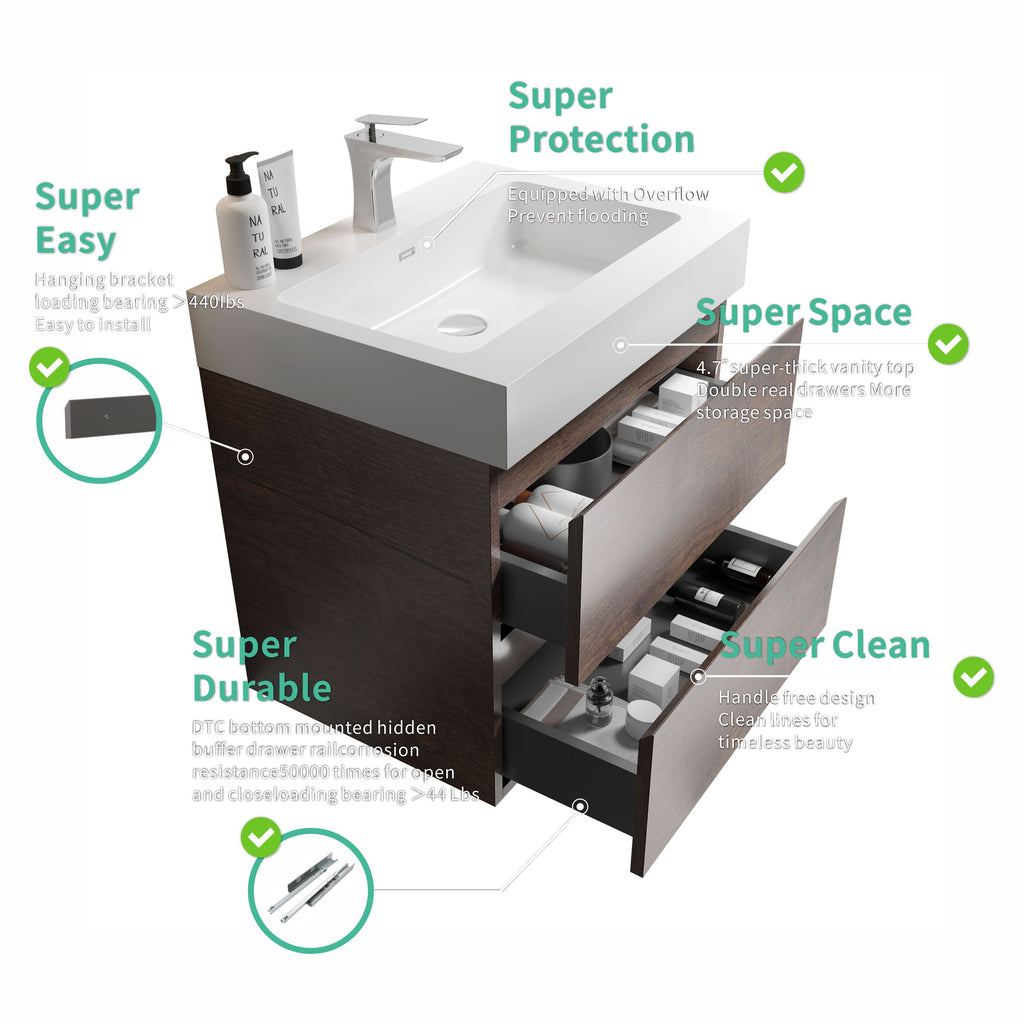 Alice doesn't just impress with its stunning appearance, but also with its smart storage solutions. Featuring double drawers, this vanity maximizes drawer space, providing you with an incredible 20% increase in storage capacity. Say goodbye to bathroom clutter as you effortlessly organize your essentials, keeping your space clean and serene.