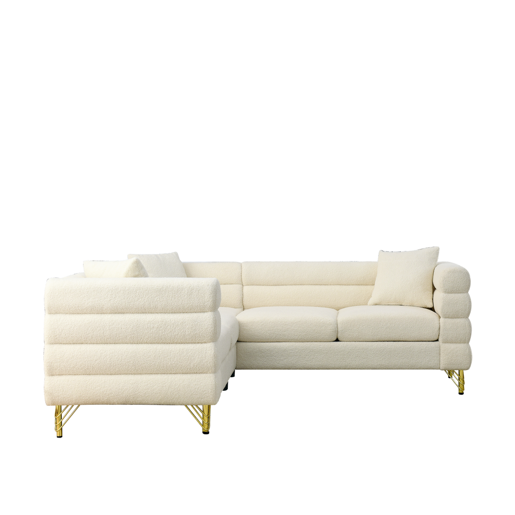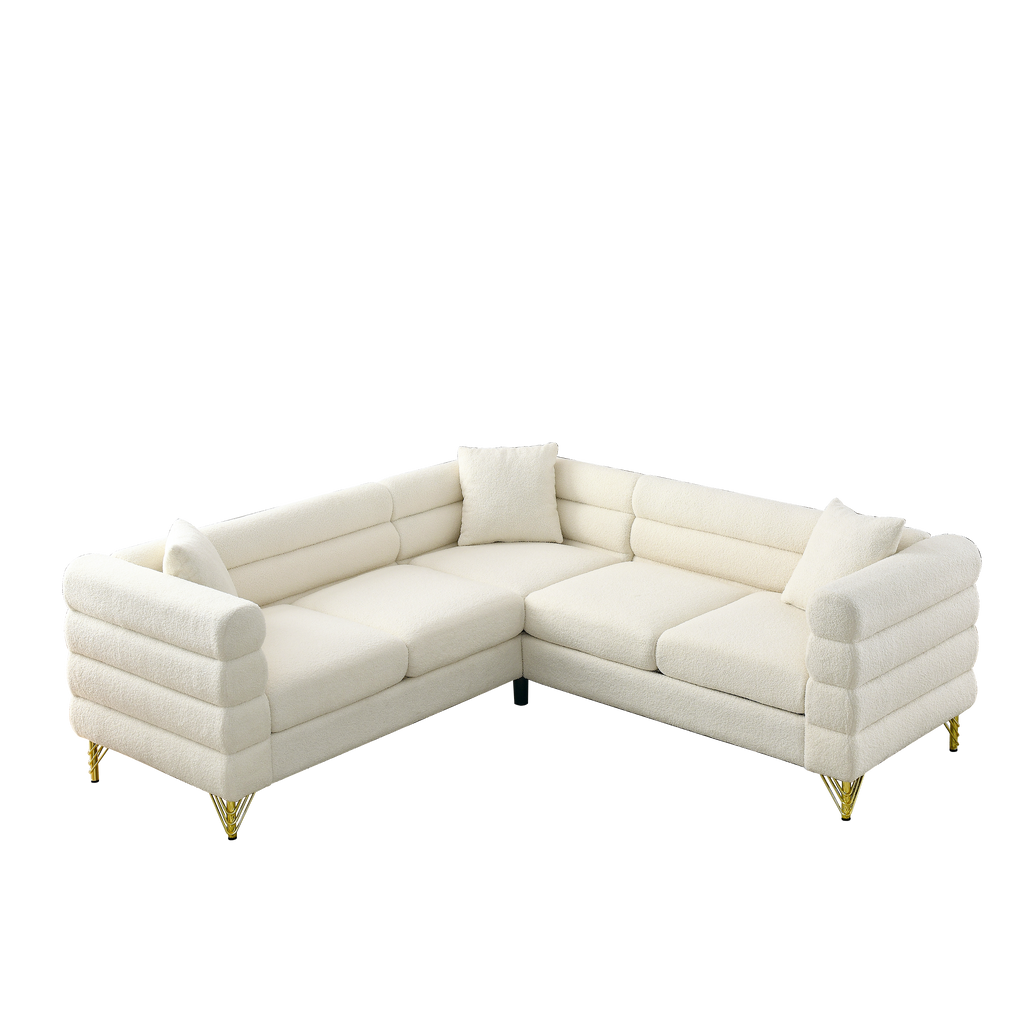 1. The sofa must be installed in strict accordance with the instructions. 2. When the sofa seat bag is received, it is in a vacuum state. Please open the bag according to the instructions (note: do not hang it with a blade when unpacking, it is easy to damage the inner liner of the seat bag. Use scissors to cut along the edge .) Take out the seat bag liner, and install the sofa cushion cover (Note: When installing the seat bag cover, you must install it according to the instruction manual. , you need to pat and tidy the four sides of the sofa seat bag several times) and it can be 100% recovered after standing for 24 hours. 3. The sofa is recommended to be placed against the wall. 4. After confirming the accessories: the angle bracket is installed, the sofa can be moved for a short distance. When moving, two people are required to move it, and handle it with care. ▲Product details. Carton quantity: 3 pcs. Product Name: Corner Sofa.DIMENSIONS. Please refer to the picture. Detailed Size. Please refer to the picture. Package Size. Please refer to description. Package Weight (lbs). Please refer to description. Product Weight (lbs). Please refer to description. Does this product include pillows: Three pillows. Weight Capacity: 250 lbs/seat. Assembly Required. Required (see instructions). Fabric Material: Teddy. Frame Material: Pine + Eucalyptus + Plywood. Seat structure: Foam + spring pack. Upholstery: Cotton. Sofa foot material:metal and plastic. Place of Origin: China. Note: Manual measurement is used, there may be some reasonable error. All pictures are taken based on actual samples, there may be slight color difference due to light or monitor.