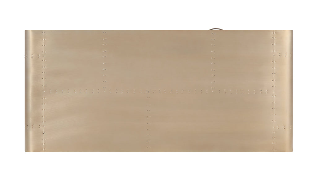 - Rectangular Writing Desk, Storage: 1 Drawer, Patchwork Gold Aluminum Top, Metal X-Shape Trestle Base, Drawer: Side Metal Glide Drawer (Full Ext.), Full-Lined Fabric, Auto-Soft Close