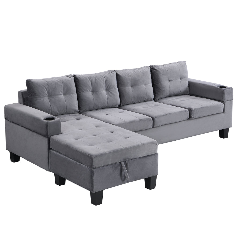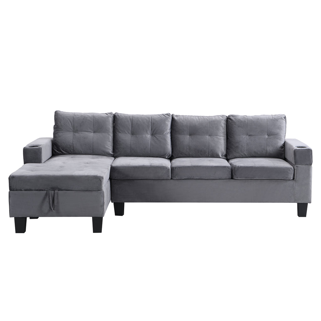 - Sofa with Left Hand storage Chaise and two cup holders (Gray)