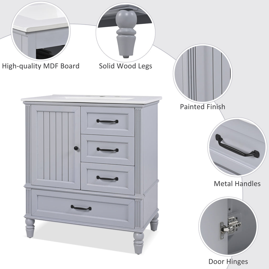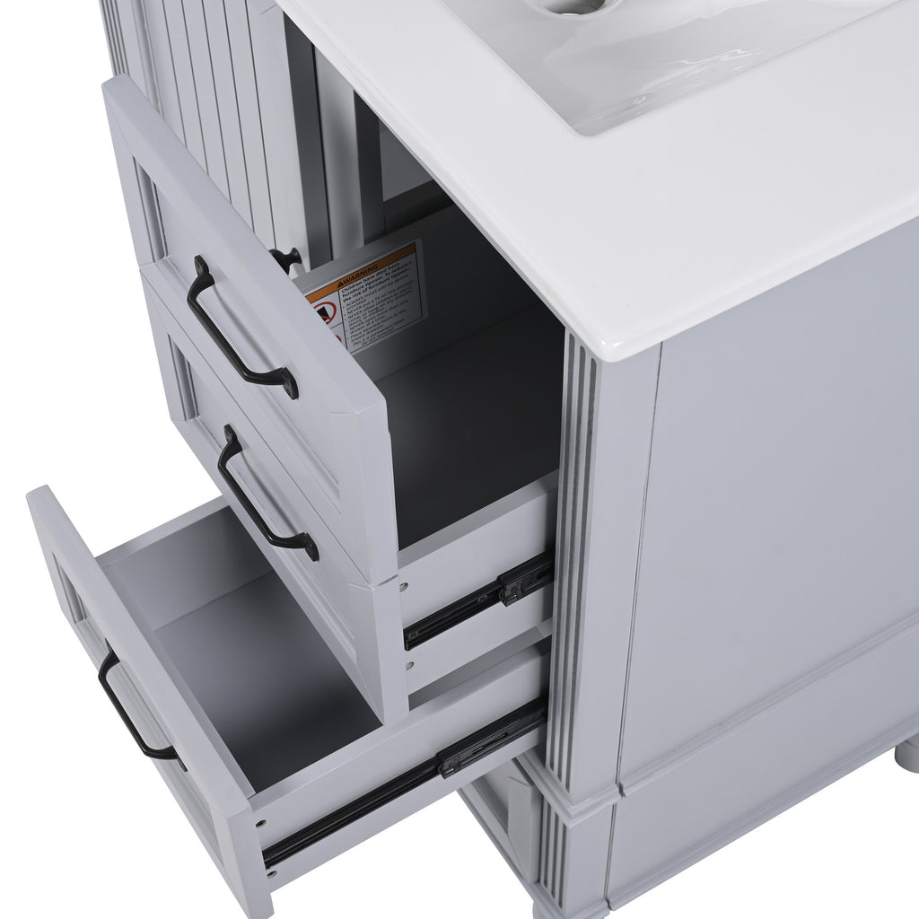 - Material: Practicality and durability is important to bathroom facilities, so we use real wood and MDF boards for this product, which not only increases the product stability but also ensures a long-lasting use. Furthermore, the surface of this vanity cabinet is in painted finish.