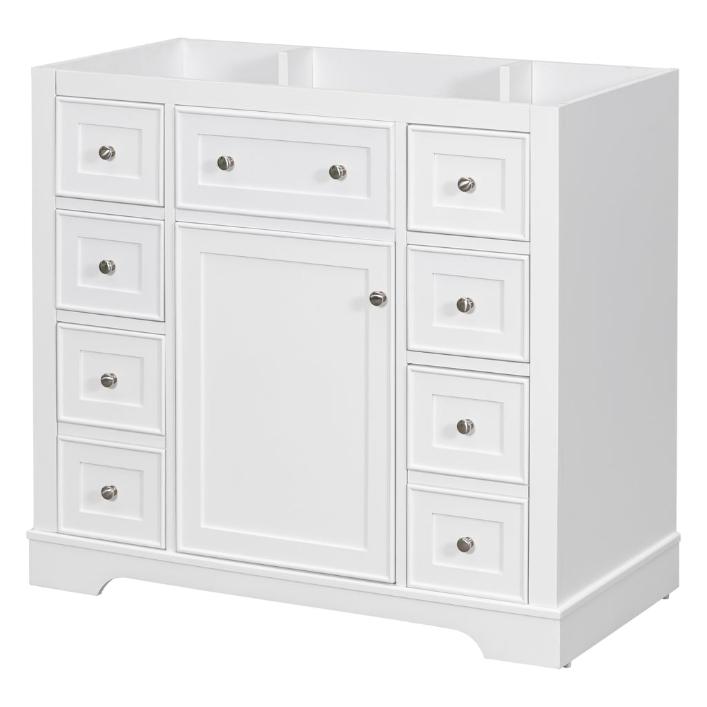 - Assembly Required - This bathroom vanity needs assembly. All the hardware(screws, metal door hinges and handles, drawer slides, anti-toppling device etc.) and instruction manual are provided. You can install it according to the instruction easily.