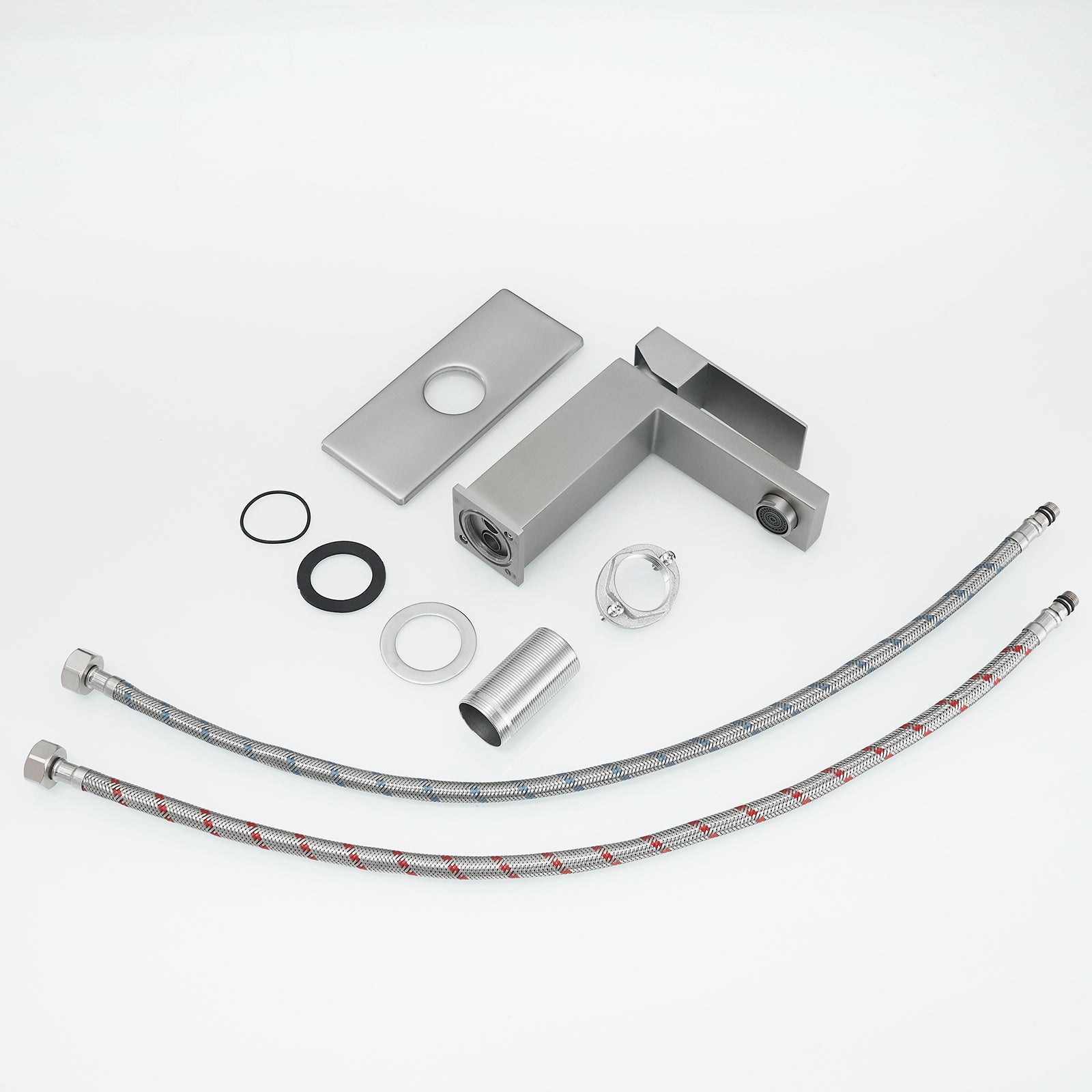 Sink Faucet With Deck Plate Waterfall Brushsed with Pop Up Drain and Supply Lines Bathroom faucets