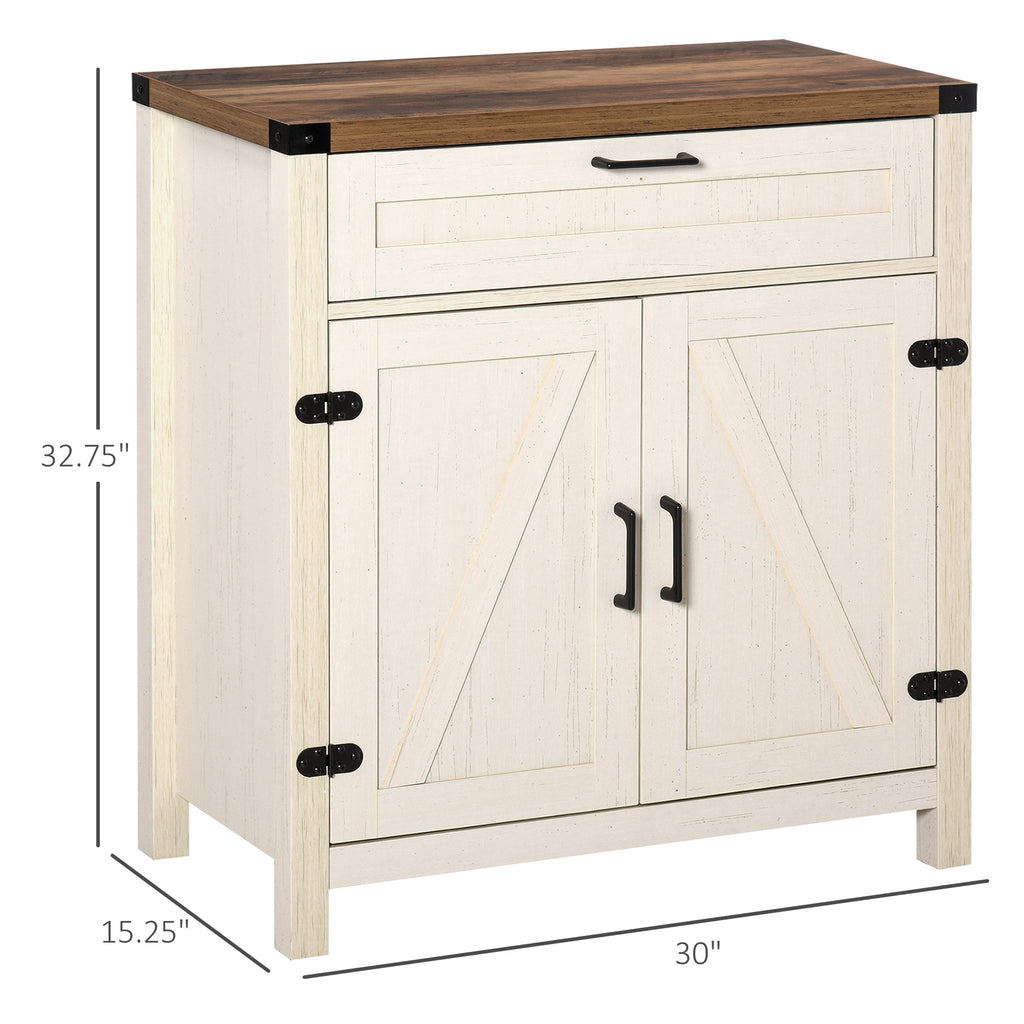 - Sufficient Storage Space: This storage cabinet features a pull-out drawer, and a double door cabinet, providing compact storage for small accessories, utensils, and plates. An adjustable shelf is behind the door for your storage convenience.