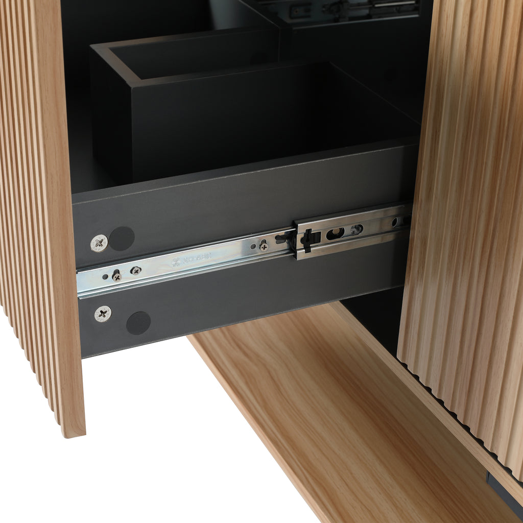 Using soft closing doors that prevent the doors from slamming shut and allow them to close with gentle automatic ease.Making your use more comfortable.The soft-close doors and soft-close drawer, offer a big extra space in the cabinet.