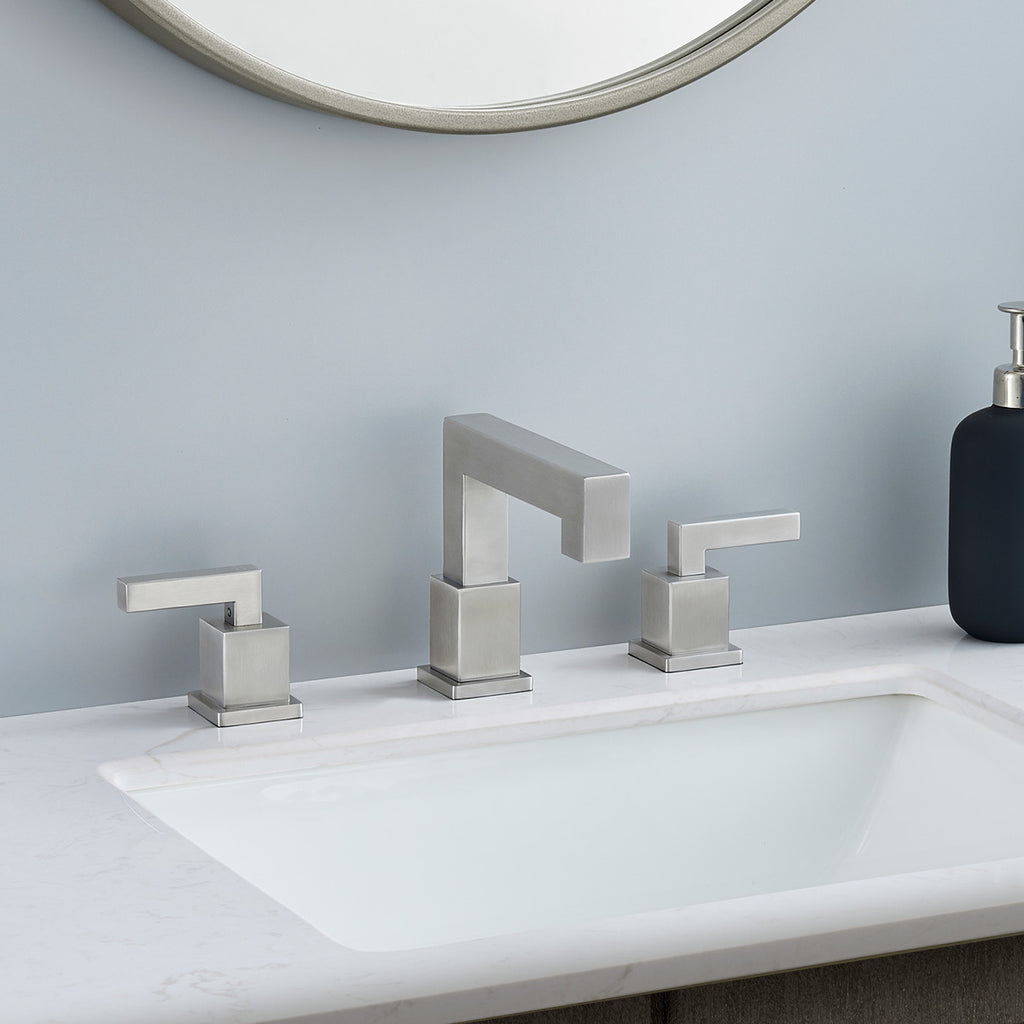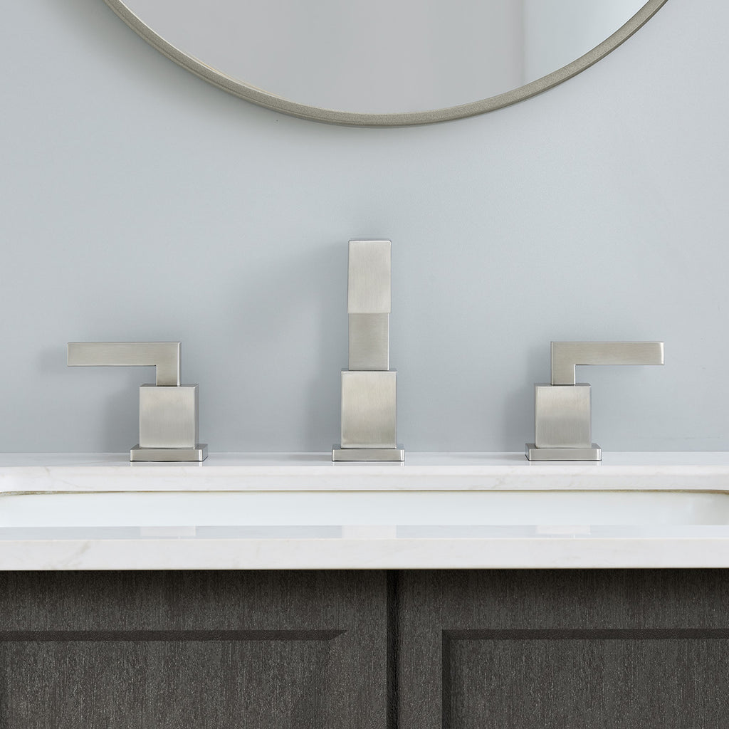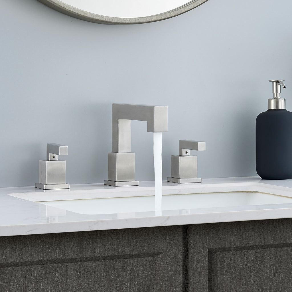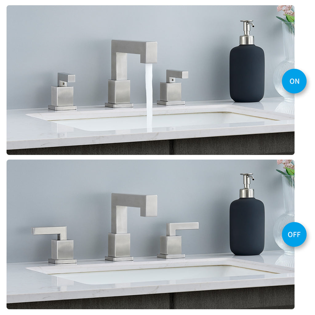 - [Exquisite Design] This Lavatory Faucets has double straight handles that are convenient for Preciser and easier Control in water temperature and volume, The easy-to-clean nozzle is convenient for your daily cleaning, is suitable for most bathroom designs.
