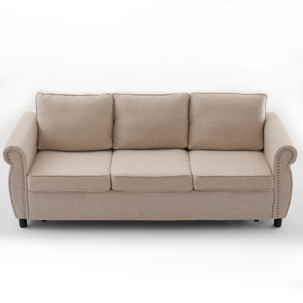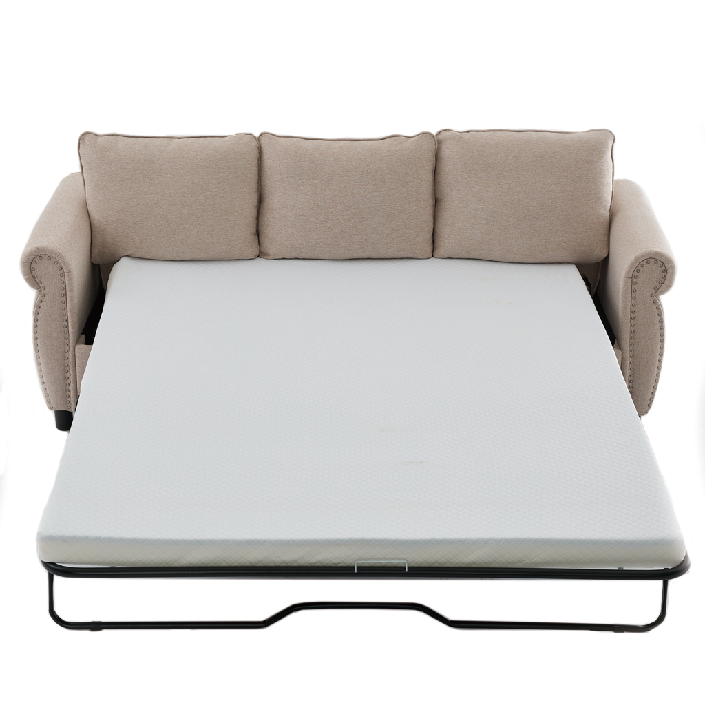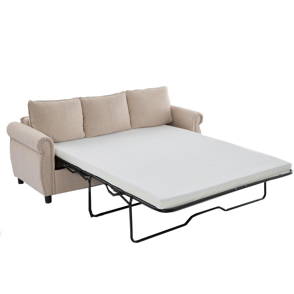- 【2-in-1 Sleeper Sofa Bed】The pull-out bed can be used as a small sofa, sofa bed, guest bed, maximizing all your needs. The overall dimensions are 81.5' (L) x 31.1' (W) x 33' (H), and it extends to 81.5' (L) x 86.5' (W) x 33' (H) with the bed frame unfolded, offering a space-saving and durable solution for your home. Bed Capable of supporting up to 506 pounds.