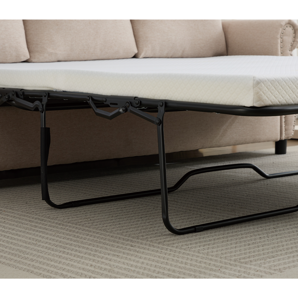 - 【Modern fashion sofa】 Fluffy cushions and riveted armrests paired with the pullout sofa bed section will better decorate any style of living room. Warm note: This is a convertible sofa with 2-in-1, you can put it anywhere, no space.