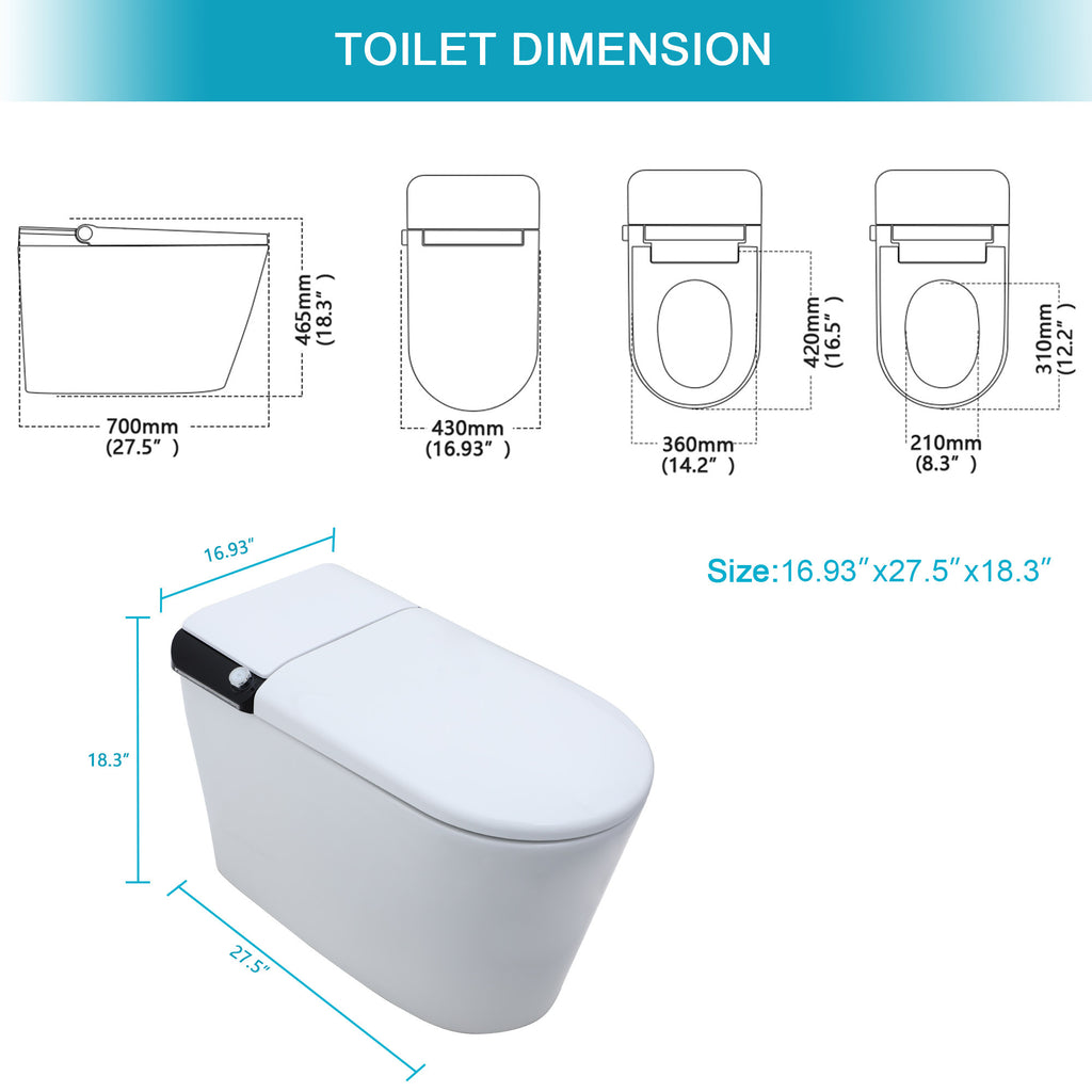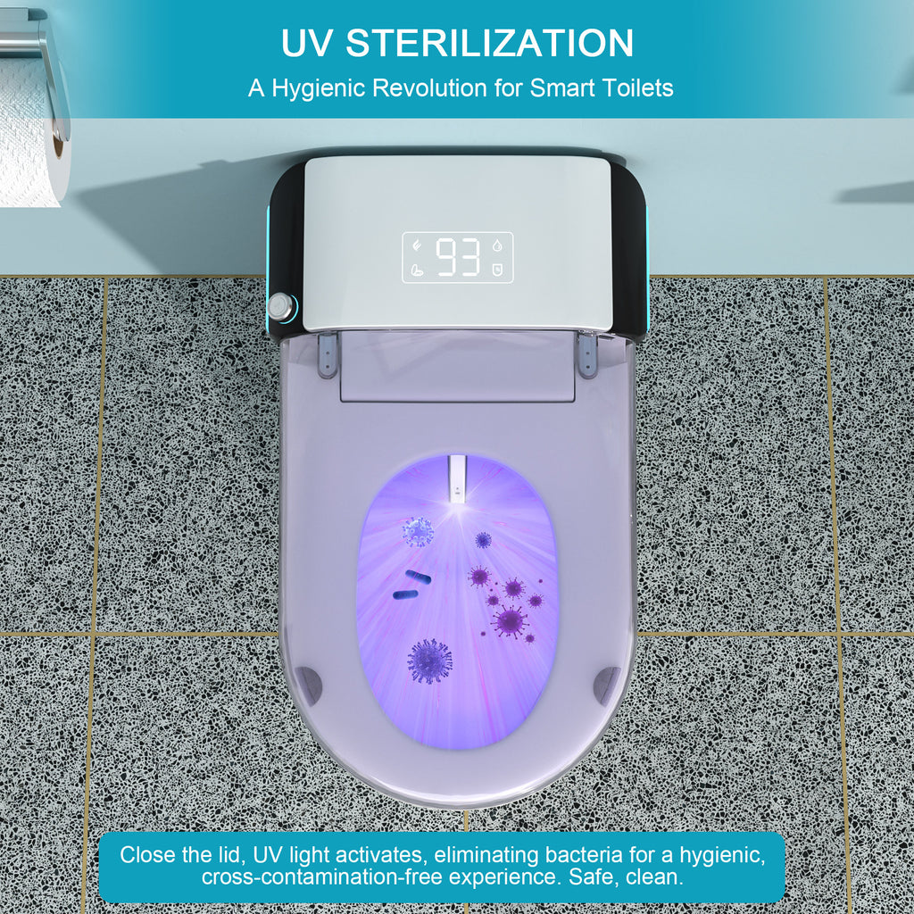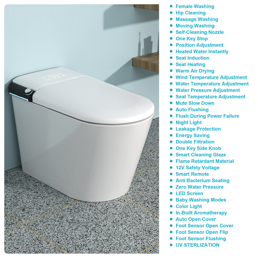 - Automatic Flush Toilet: Our smart toilet's four flush options: Foot Sensor Flushing, automatic Off-seat Flushing, plus easy Side Button or Remote Control Flush. No more bending or forgetting! Just wave your foot, sit, or use the buttons/remote to flush. Totally hands-free and easy peasy.