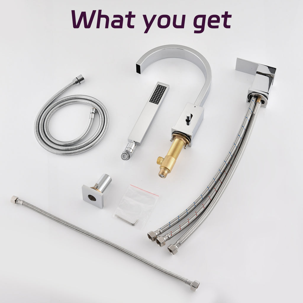- Multifunctional: 360 Degree Swivel Spout, Hand Shower with 59‘ shower hose.