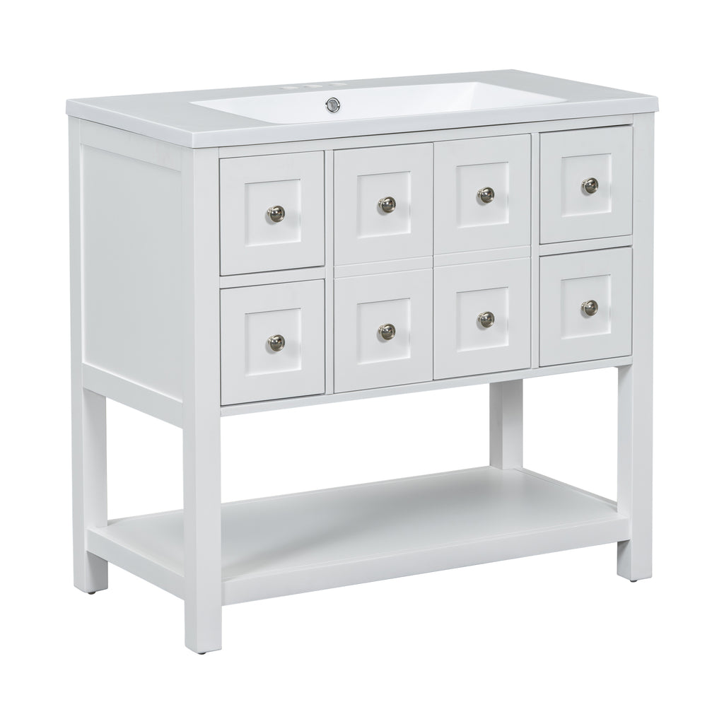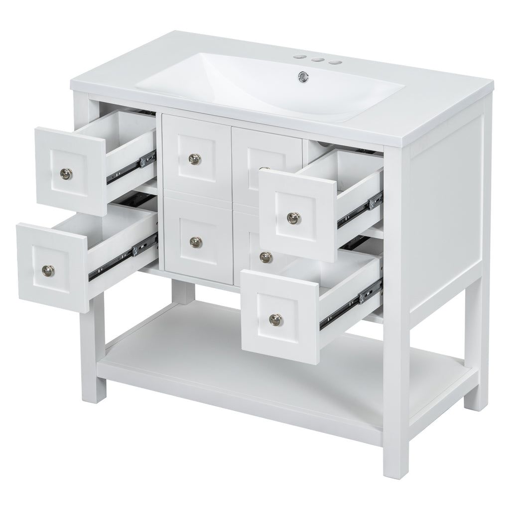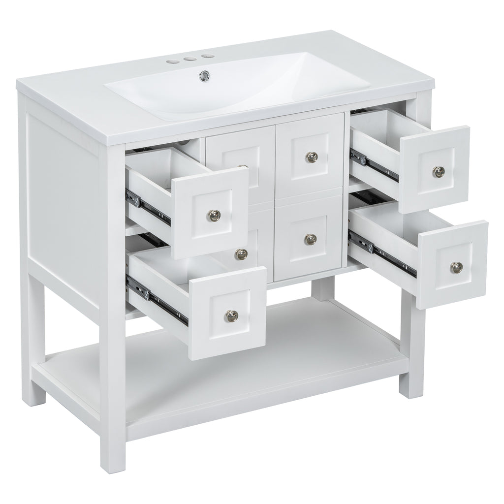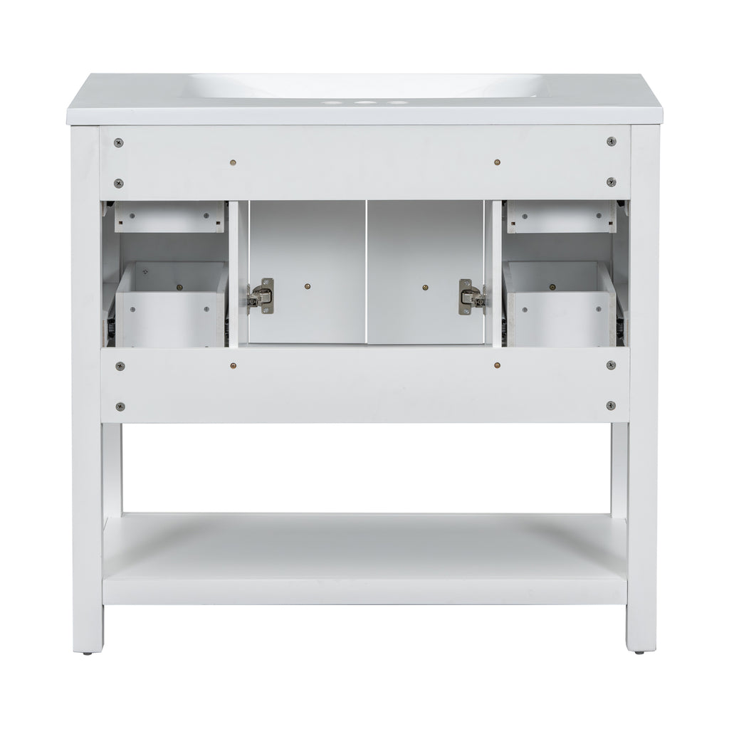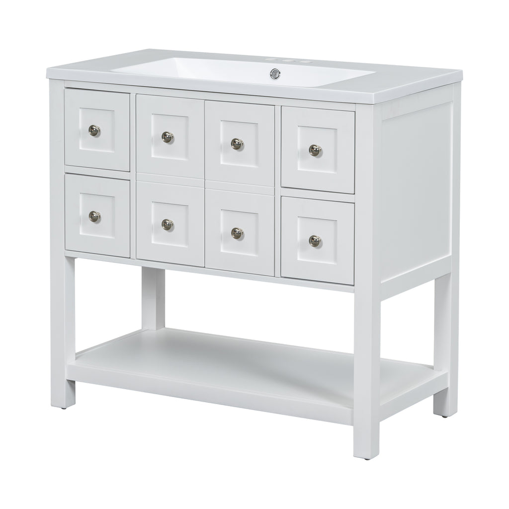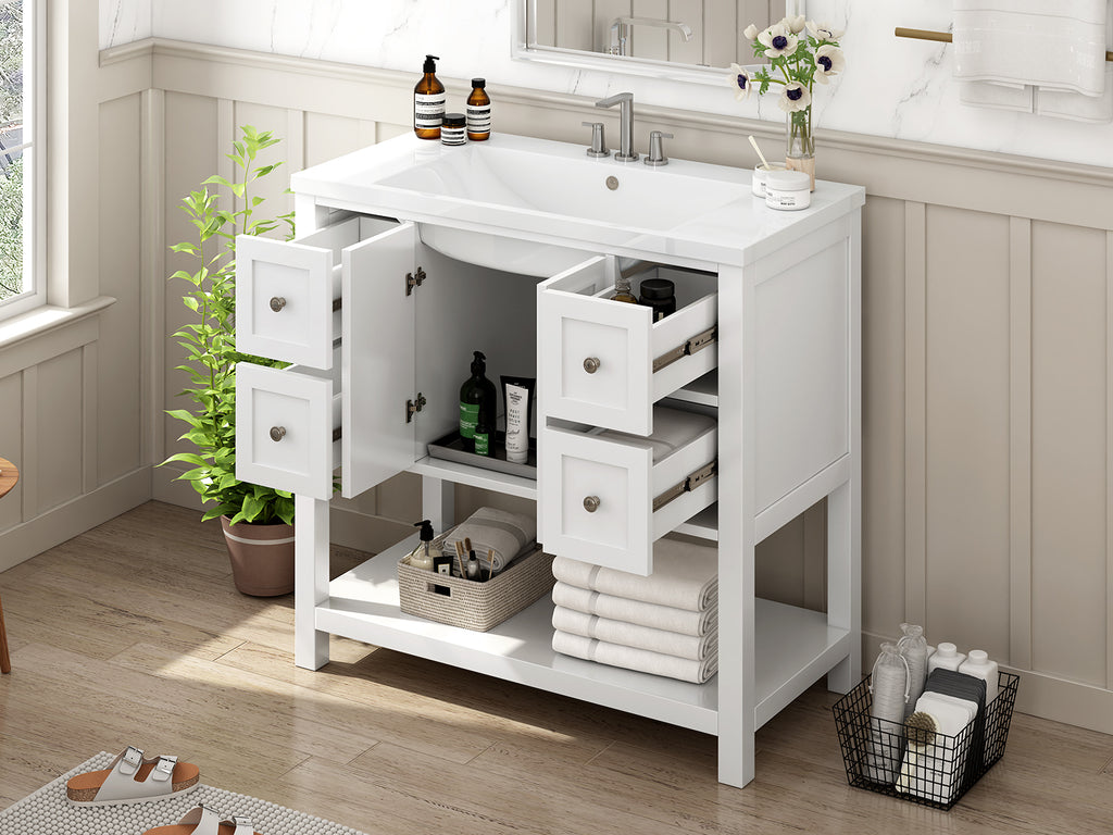 - [ Multi-Purpose Cabinet & Concealed Storage ] Are you looking for stylish and functional storage solutions for your bathroom? Our bathroom vanity provide ample space for all your toiletries and bathroom essentials. The combination of the cabinet body and the drawer perfectly stores all kinds of bathroom products and keeps the necessities away from water stains and dust. Soft-close doors and drawer fronts feature a water-resistant paint finish for durability.