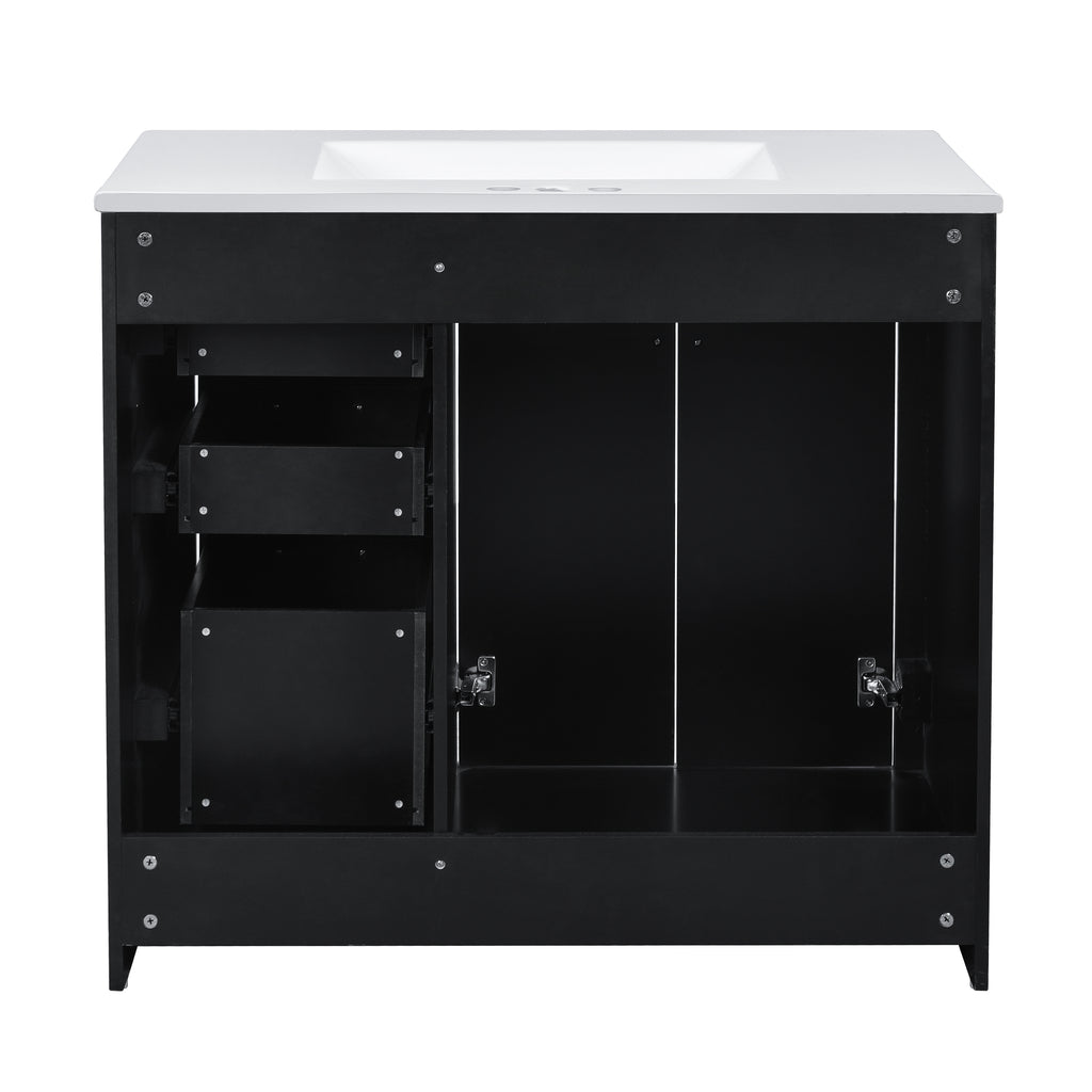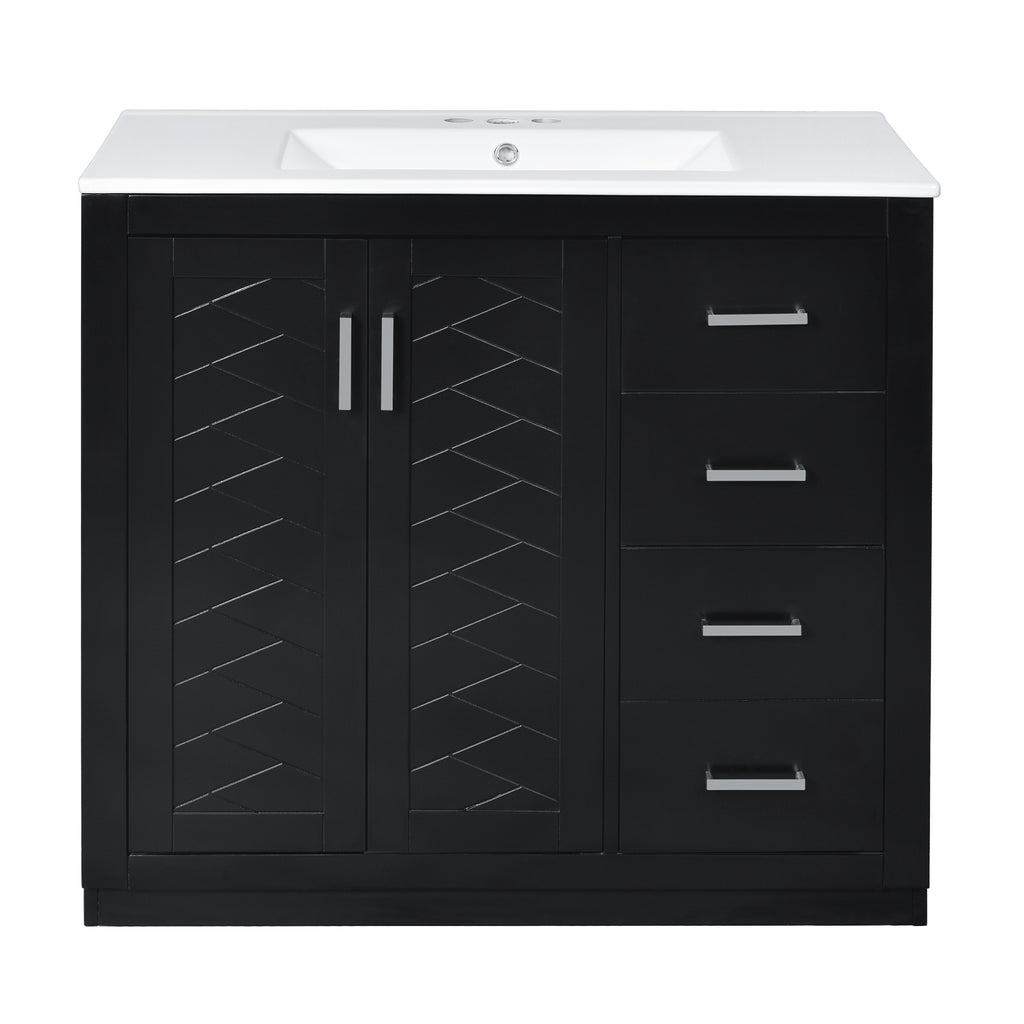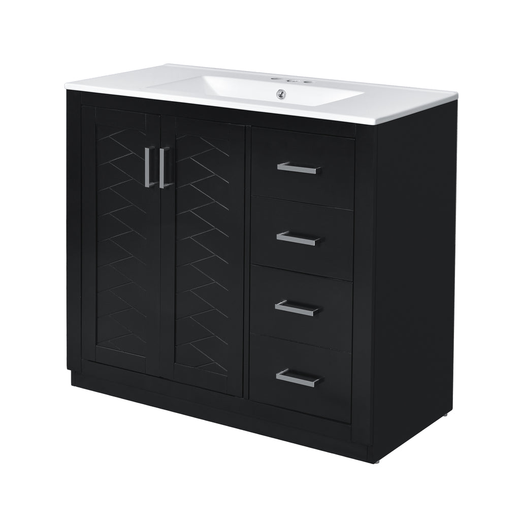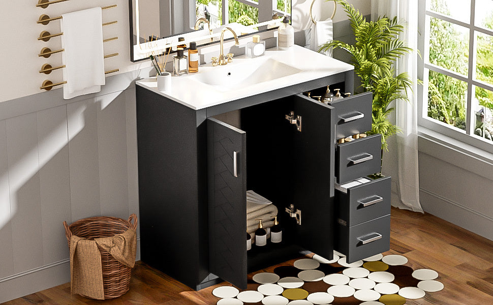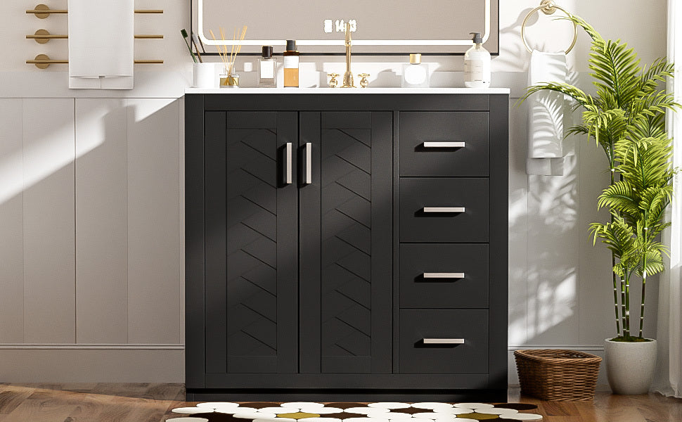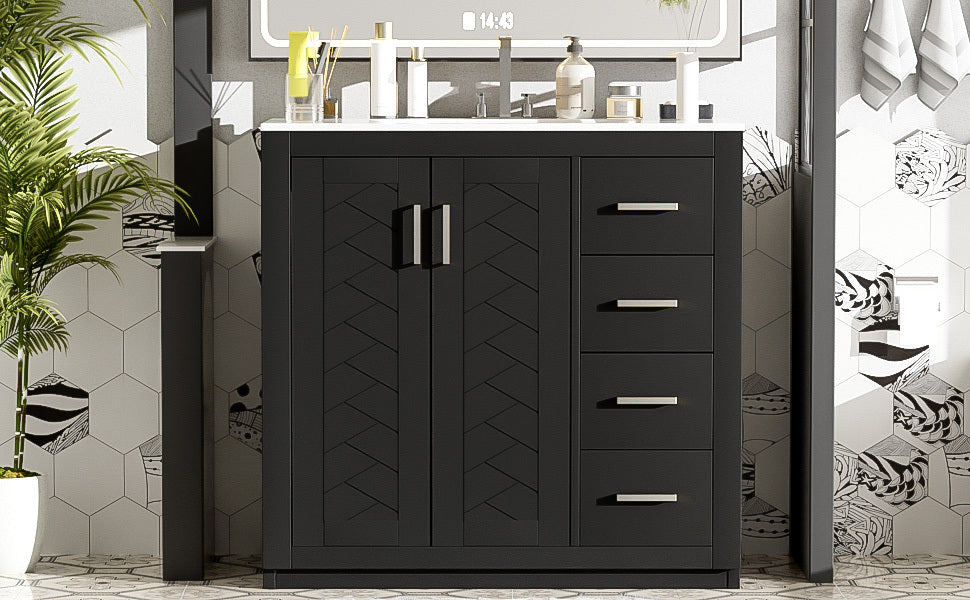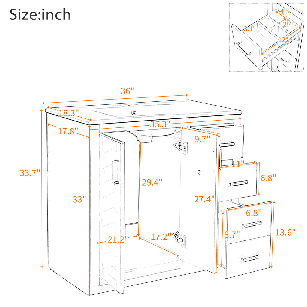 36'' Bathroom Vanity with Ceramic Sink Combo,Solid Wood Frame Bathroom Storage Cabinet