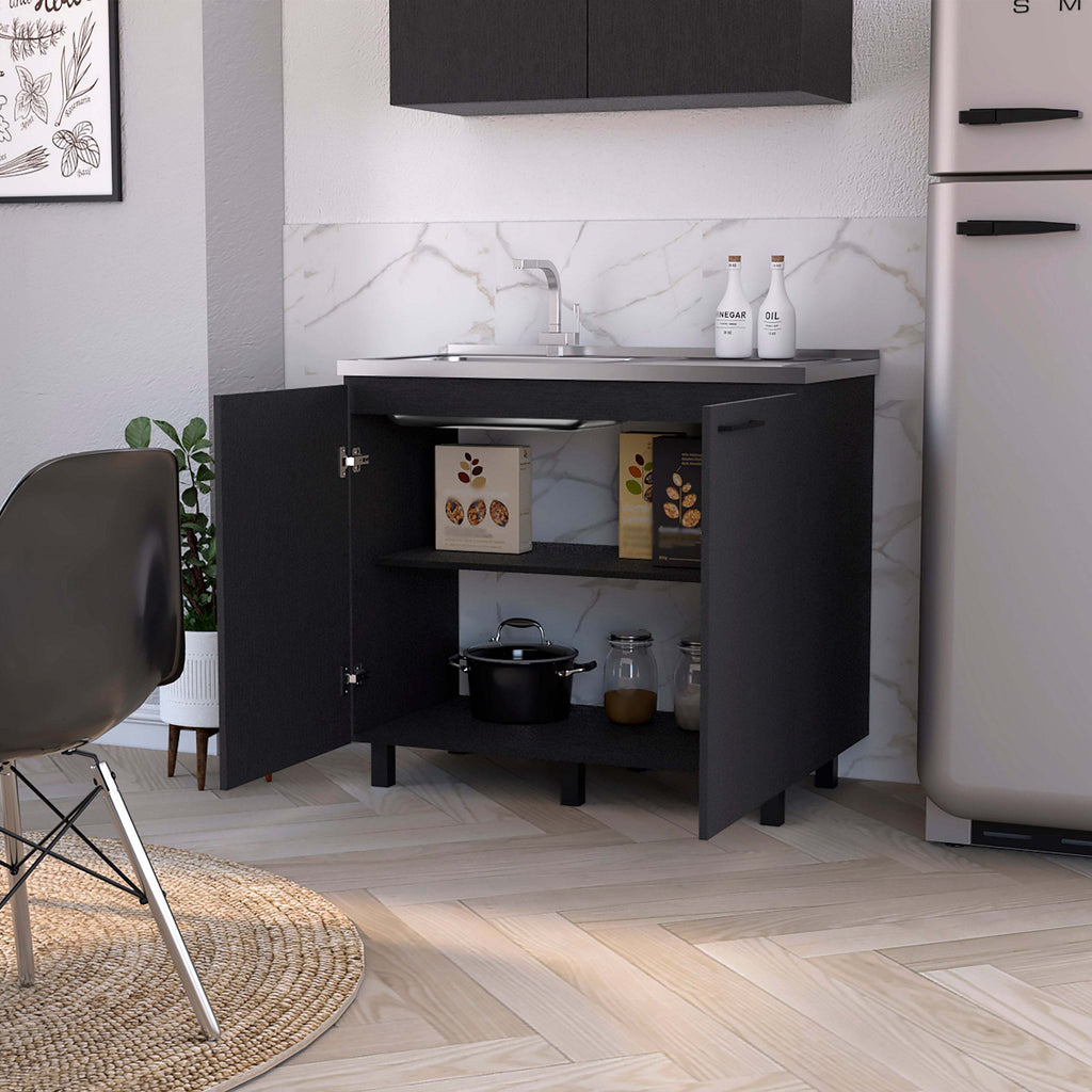 Built to last with a durable heavy-duty aluminum countertop, this cabinet features stylish slender legs, two large doors, and internal shelving, providing both functionality and elegance to any kitchen space. Whether you're renovating your kitchen or in need of additional storage, the 2 utility sink and cbinet offers the perfect combination of durability, style, and practicality, all wrapped in an elegant white manufactured wood finish.