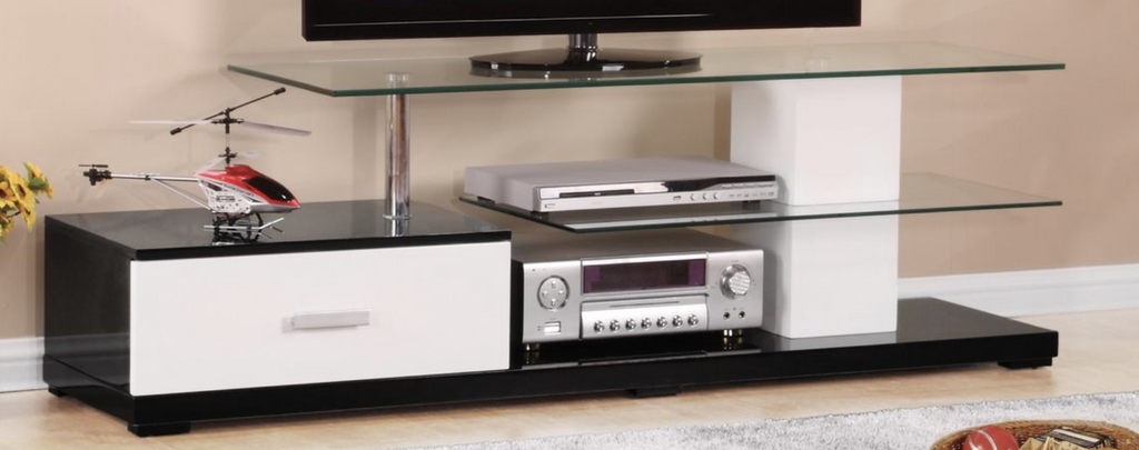 - Storage: 1 Drawer, 2 Open Compartments: Dimension• Shelves: Clear Tempered Glass Top Shelf (51' x 10mm), Clear Glass Mid Shelf (35.5'L x 8mm)
