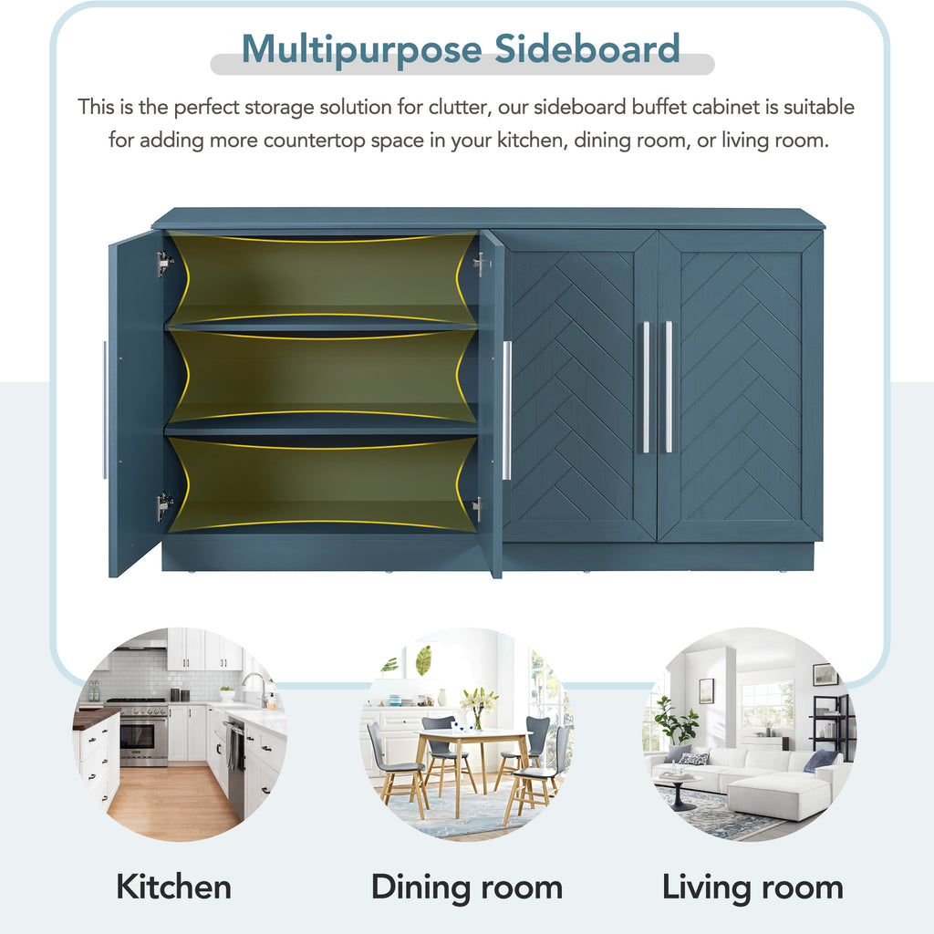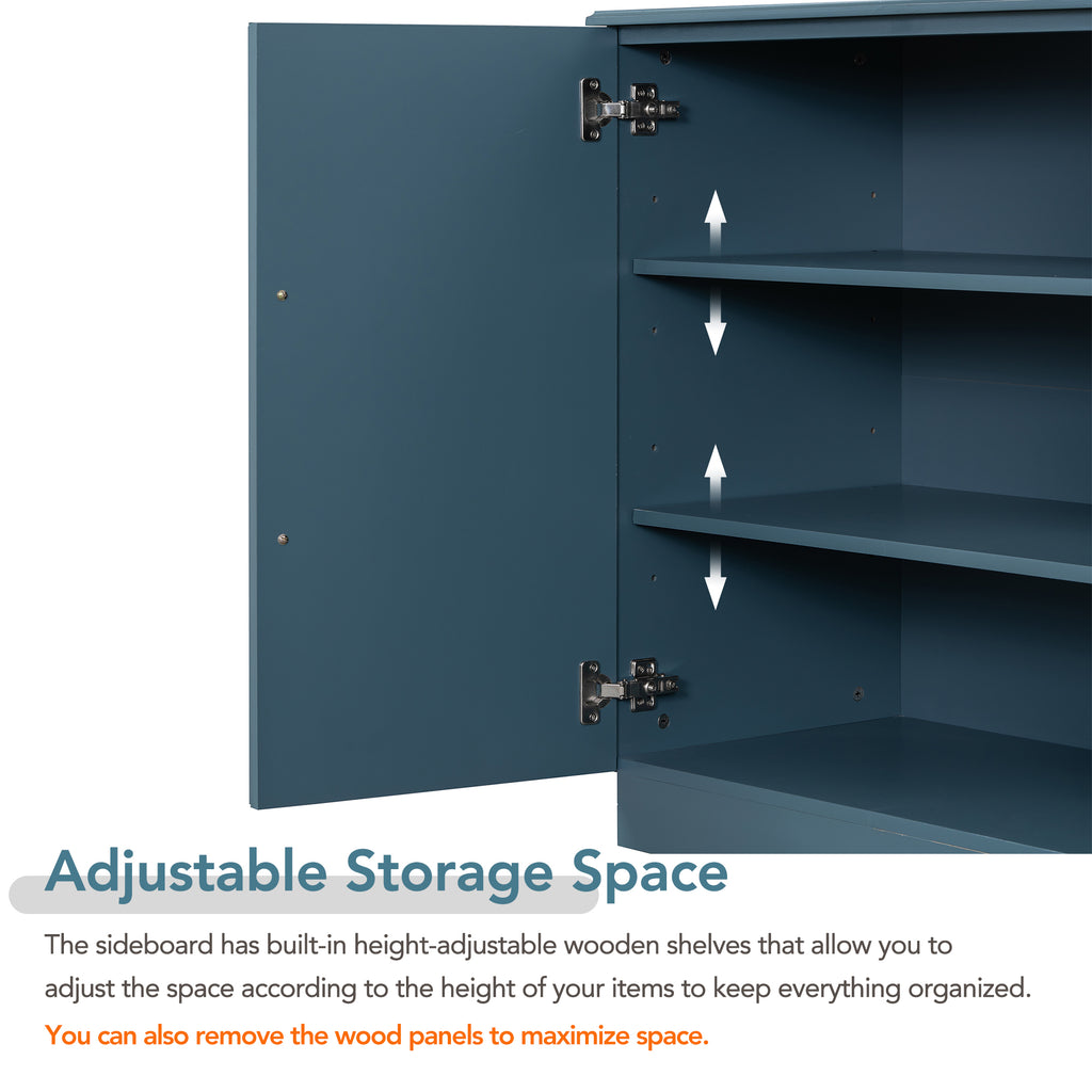 - Three Color Options: Our Sideboard is available in three different colors: antique blue, white, and black. The white and black cabinets, paired with silver handles, naturally exude a sense of light luxury, giving your space a bright and clean look. The navy blue option with silver accents brings a gorgeous, high-class touch and a retro romantic feel to your home.