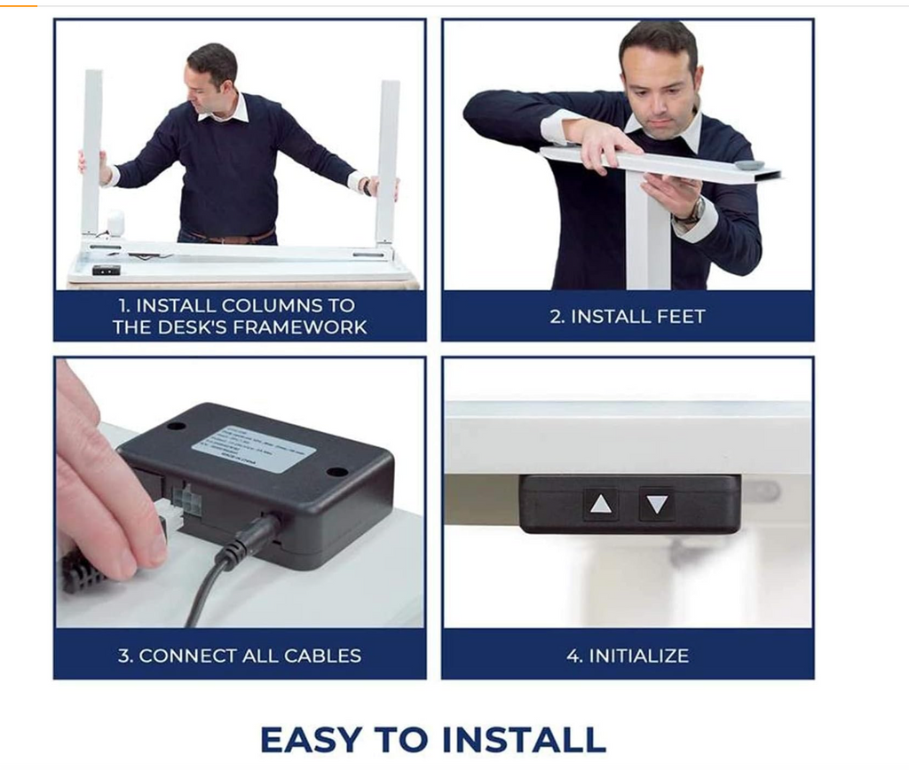 - Height-adjustable desk: The electric desk can be adjusted to any height between 28' and 47', allowing for a more ergonomic work position.