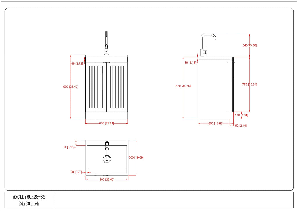 - DIMENSIONS: 23.6' W x 35.4' H x 19.7' D Sink Depth: 10 inches