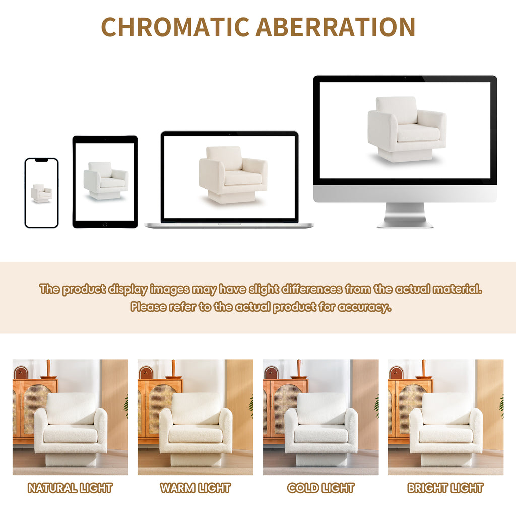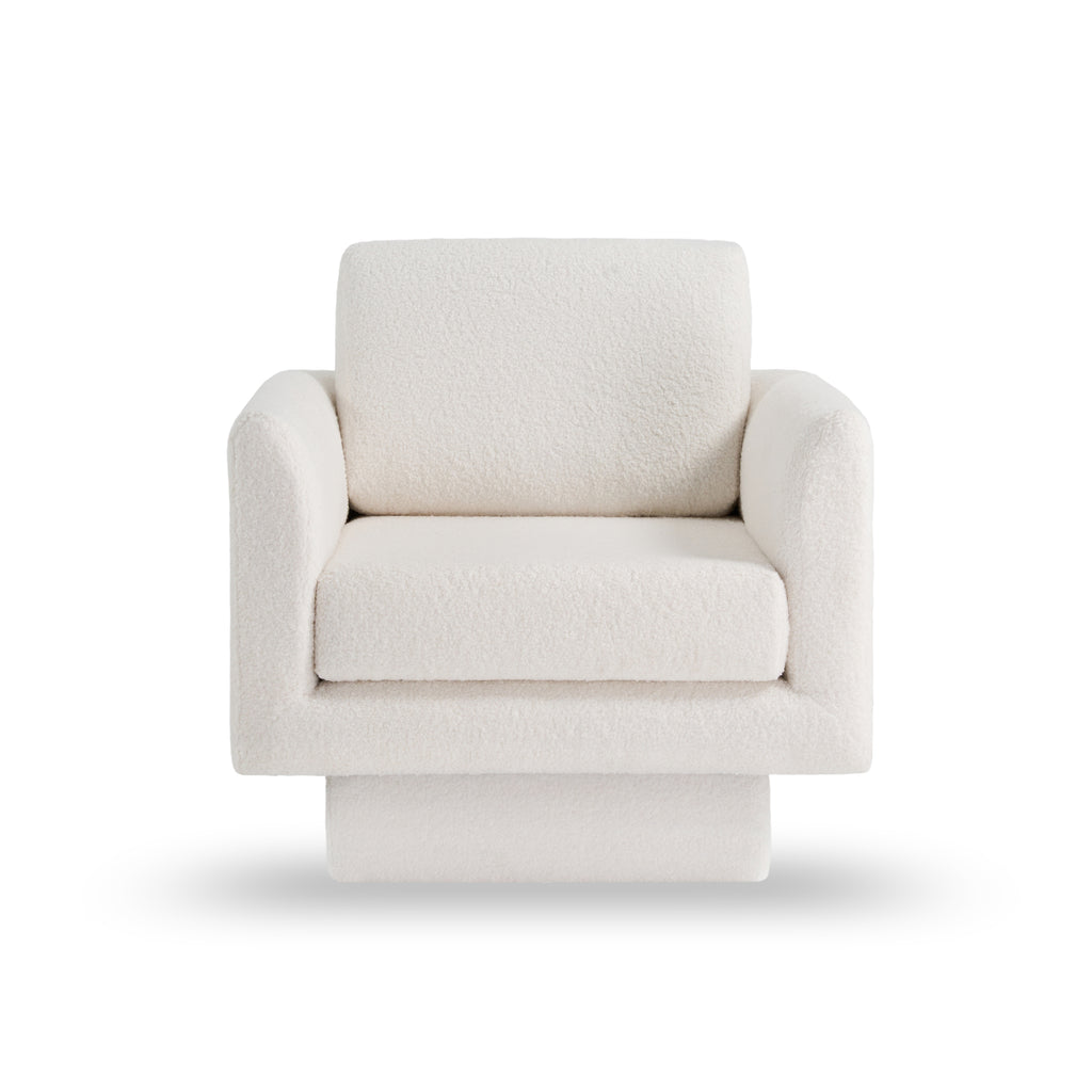 - Sherpa Boucle Fabric: The chair is upholstered with high-quality Sherpa Boucle Fabric, known for its softness, warmth, and luxurious feel. This fabric is not only comfortable to the touch but also durable, providing long-lasting resistance to wear and tear while maintaining a plush texture.