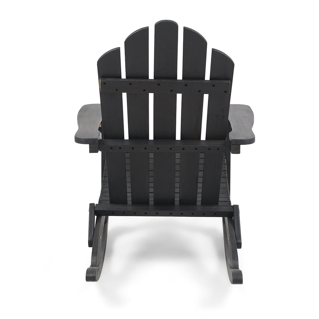 - Create a tranquil atmosphere that you'll want to keep coming back to. Featuring a sturdy acacia wood frame and an iconic Adirondack-inspired design, our rocking chair makes any backyard ultra-inviting. Complete with classic slat paneling and long gentle rockers, this chair emphasizes versatile and cozy cottage-side vibes. Allow your outdoor space to reflect a welcoming, natural ambiance that all will enjoy.