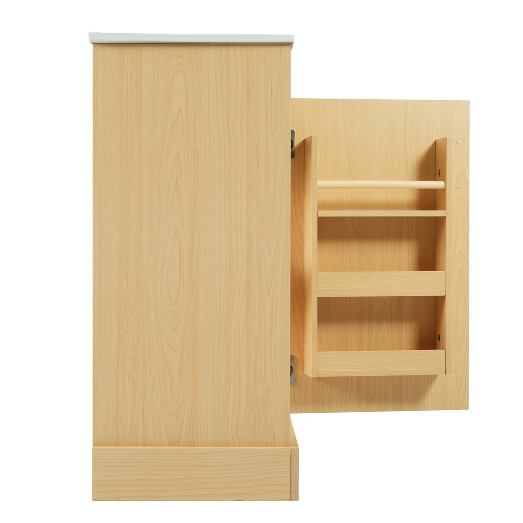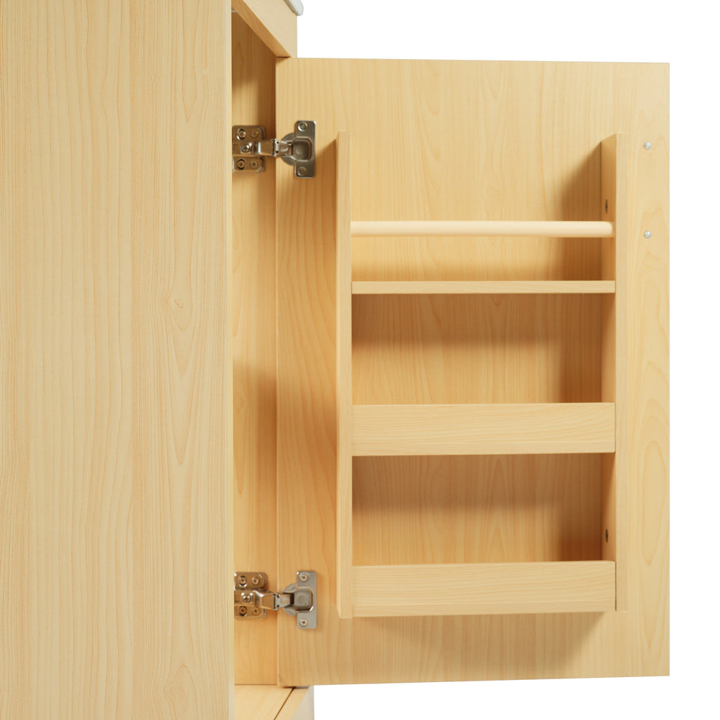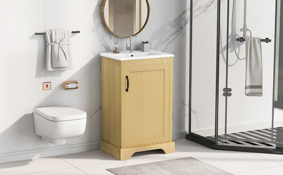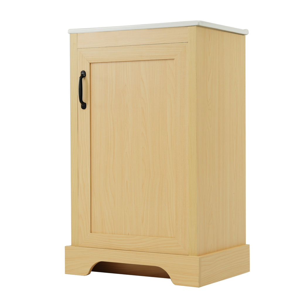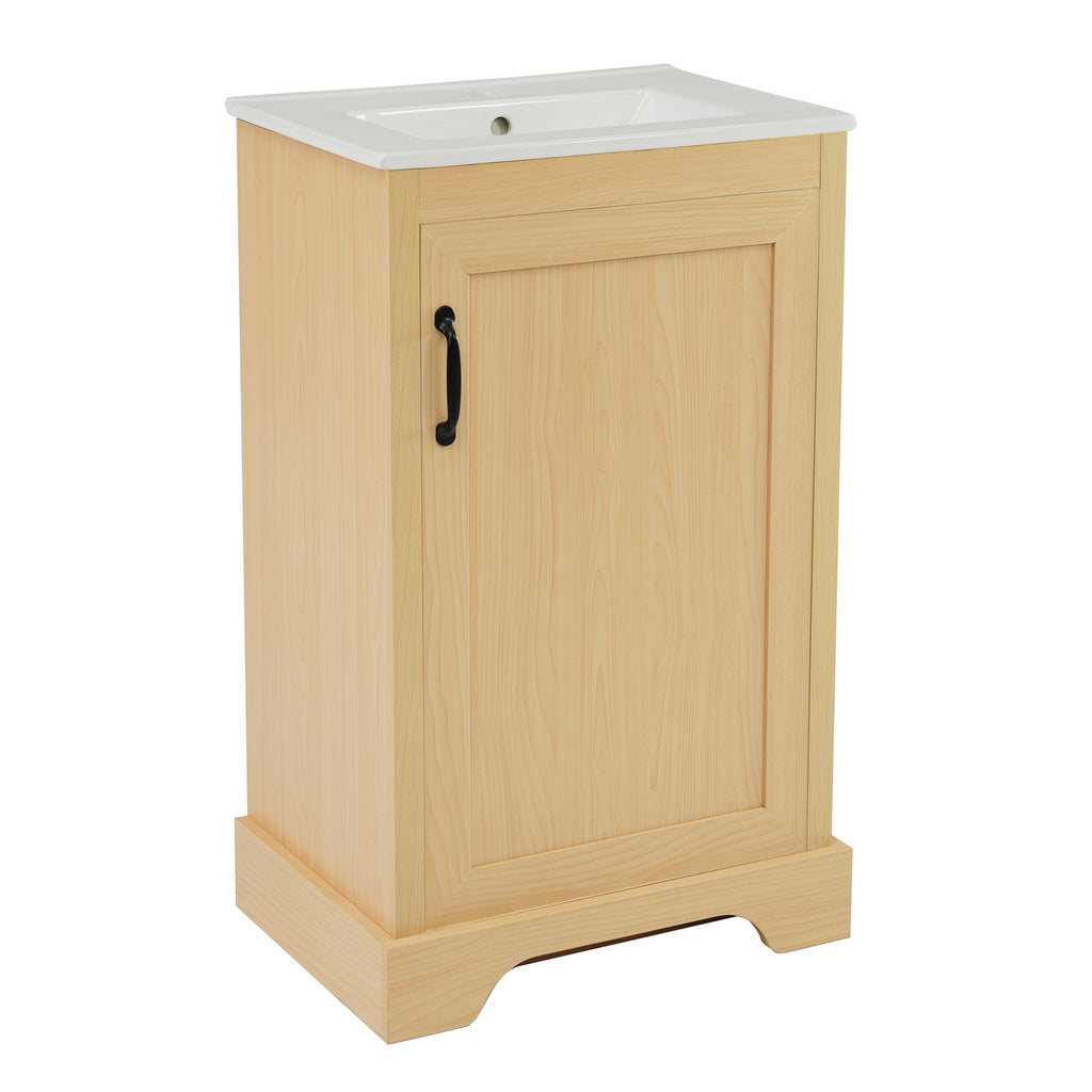 - Vanity with Cabinet & Storage Rack & Adjustable Shelve - This bathroom vanity has ample storage space: one cabinet with door, three-tier storage rack on the door, and adjustable shelve. You can put soaps, towels, shampoos, tissue paper and other bathroom essentials in it so to keep them away from dust.