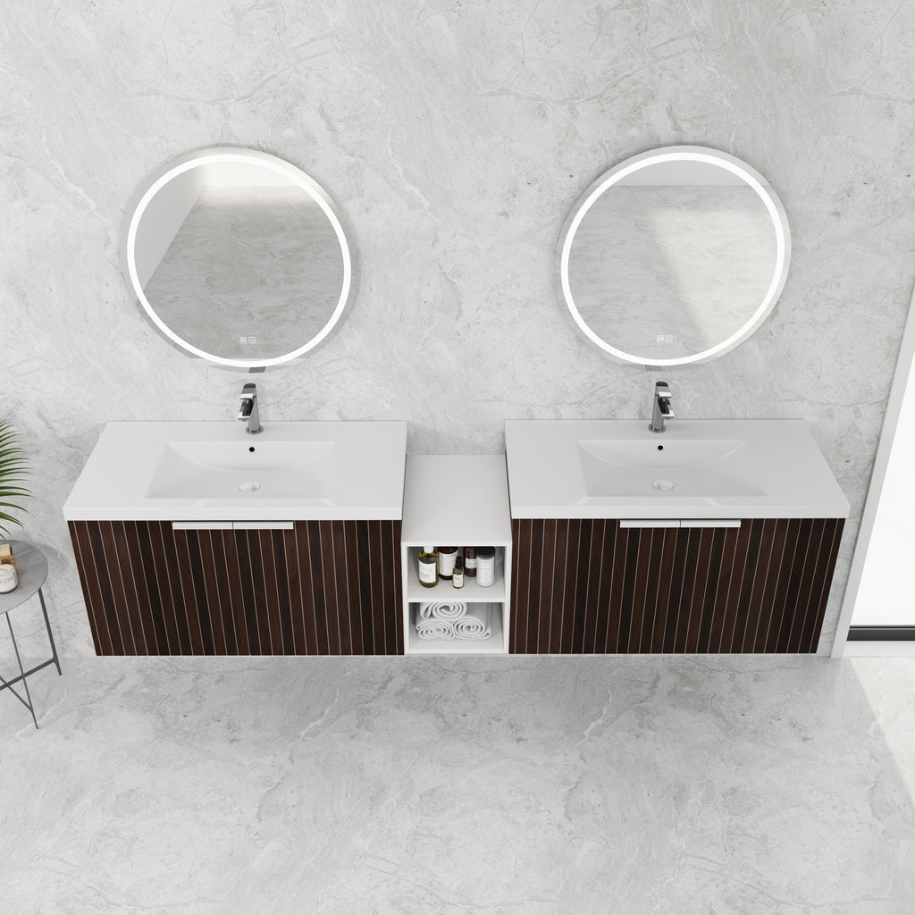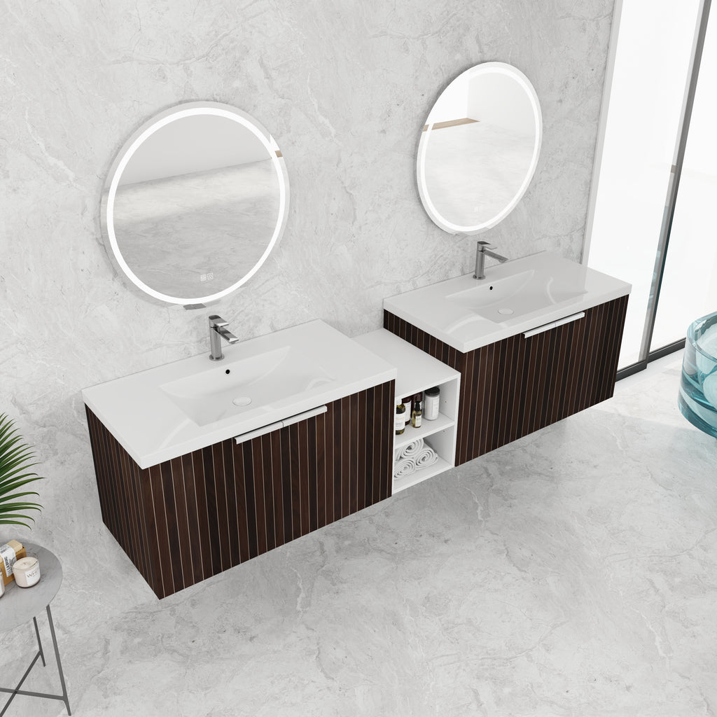 | Package includes | - 2x Vanity Cabinet; - 1x Small Storage Shelves;- 2x Resin Sink;- 4x Metal Handle; Parts Package |