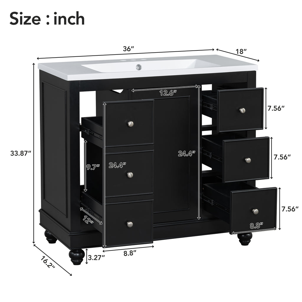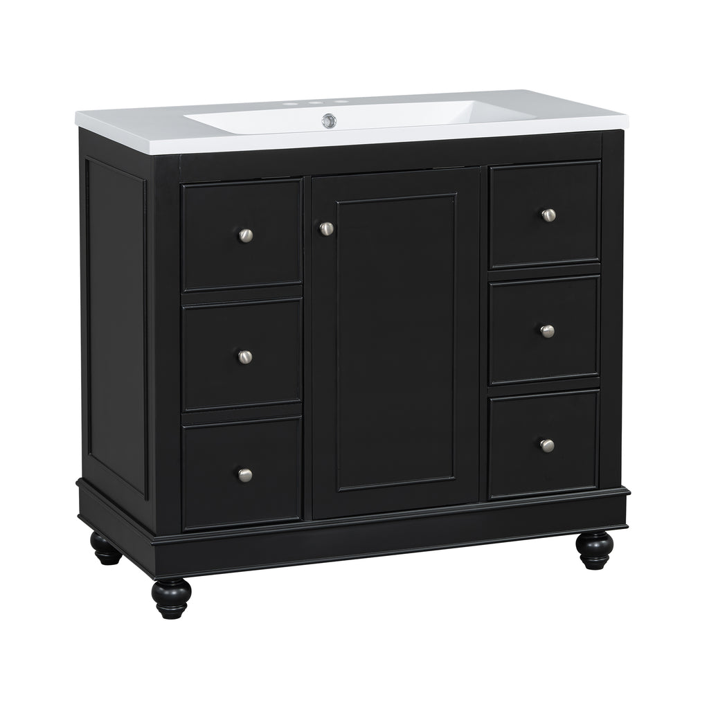 - 4 Drawers & 1 Cabinet Door: Conveniently store towels, toiletries, and other bathroom essentials in the four drawers and one cabinet door.